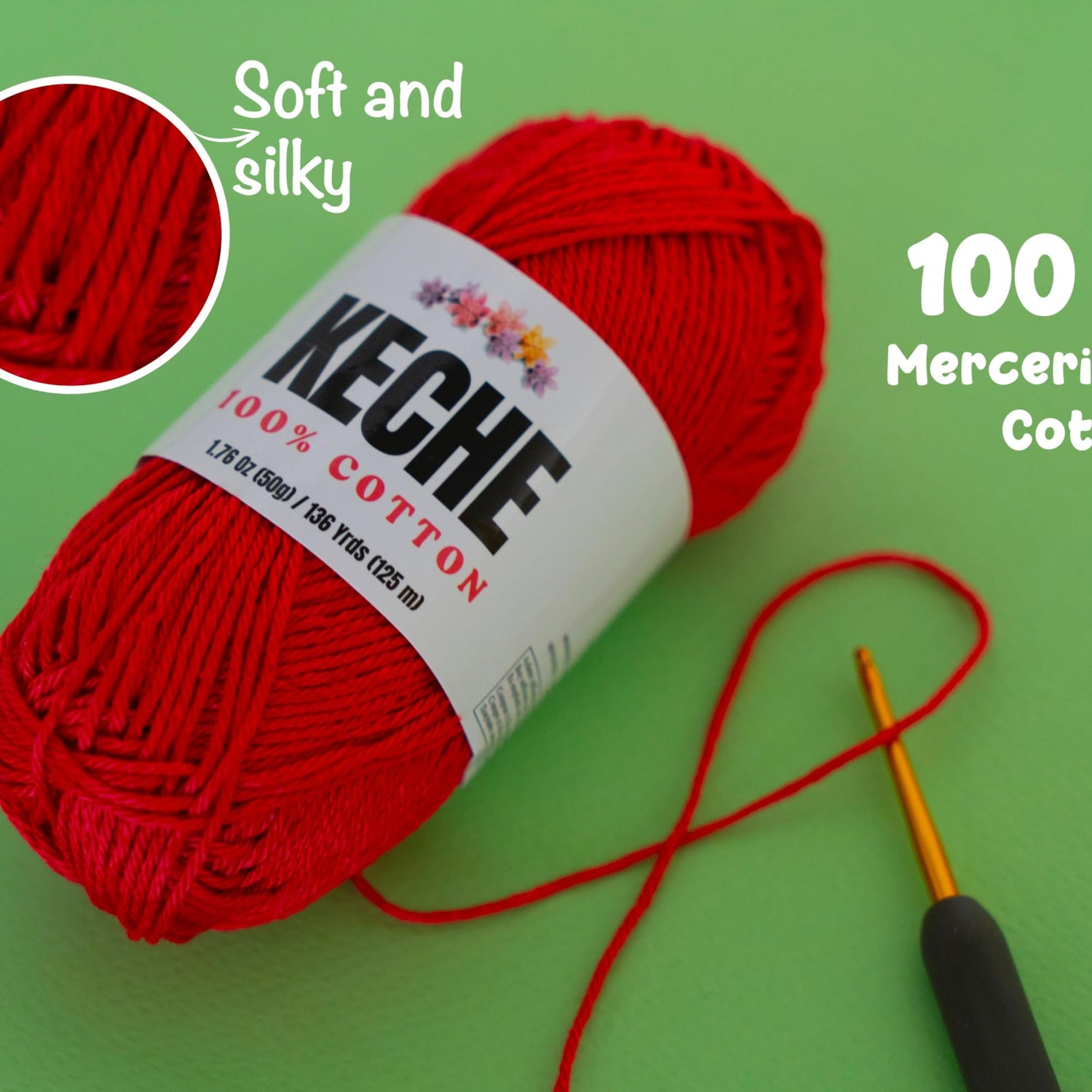 - COTTON YARN FOR CROCHETING AND KNITTING: 100% cotton. Each skein of this mercerized cotton yarn weighs 1.76 Oz (50g) and is 136 yards (125 meters) long.