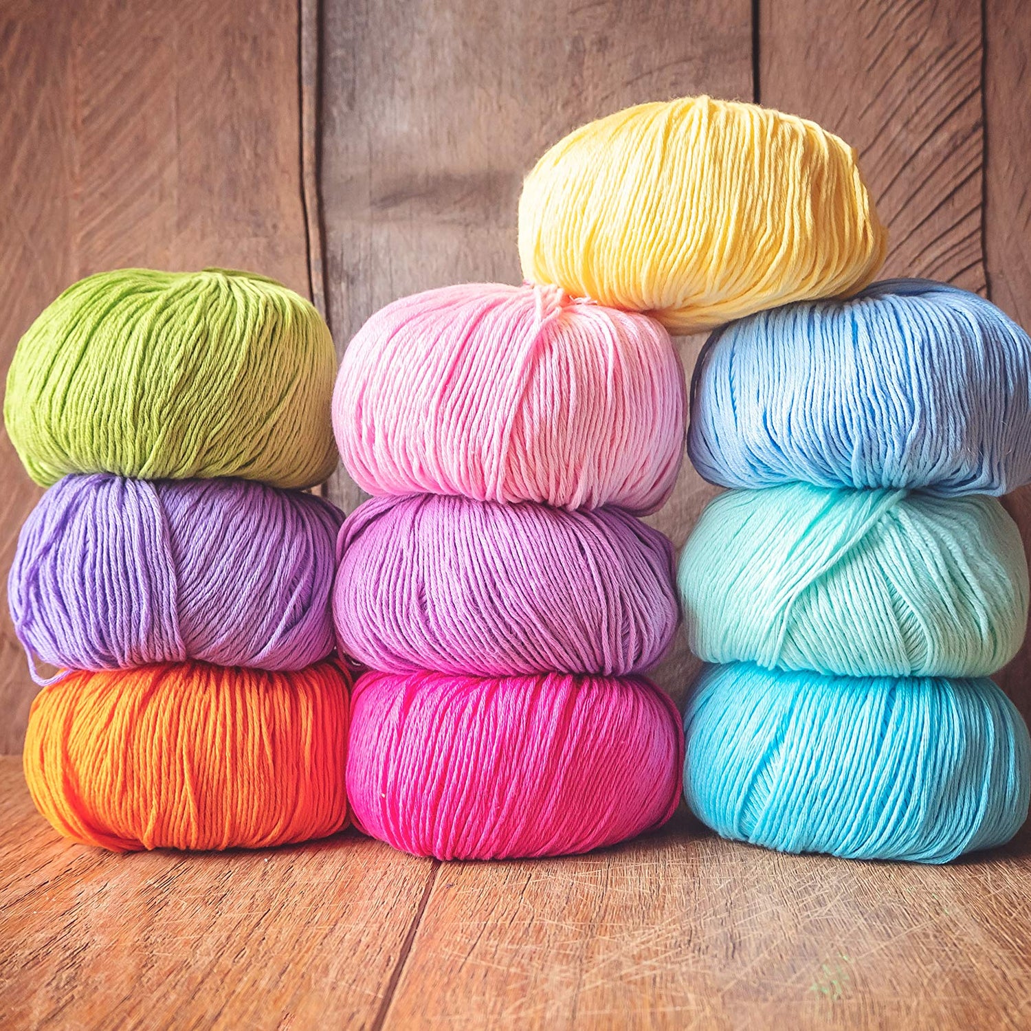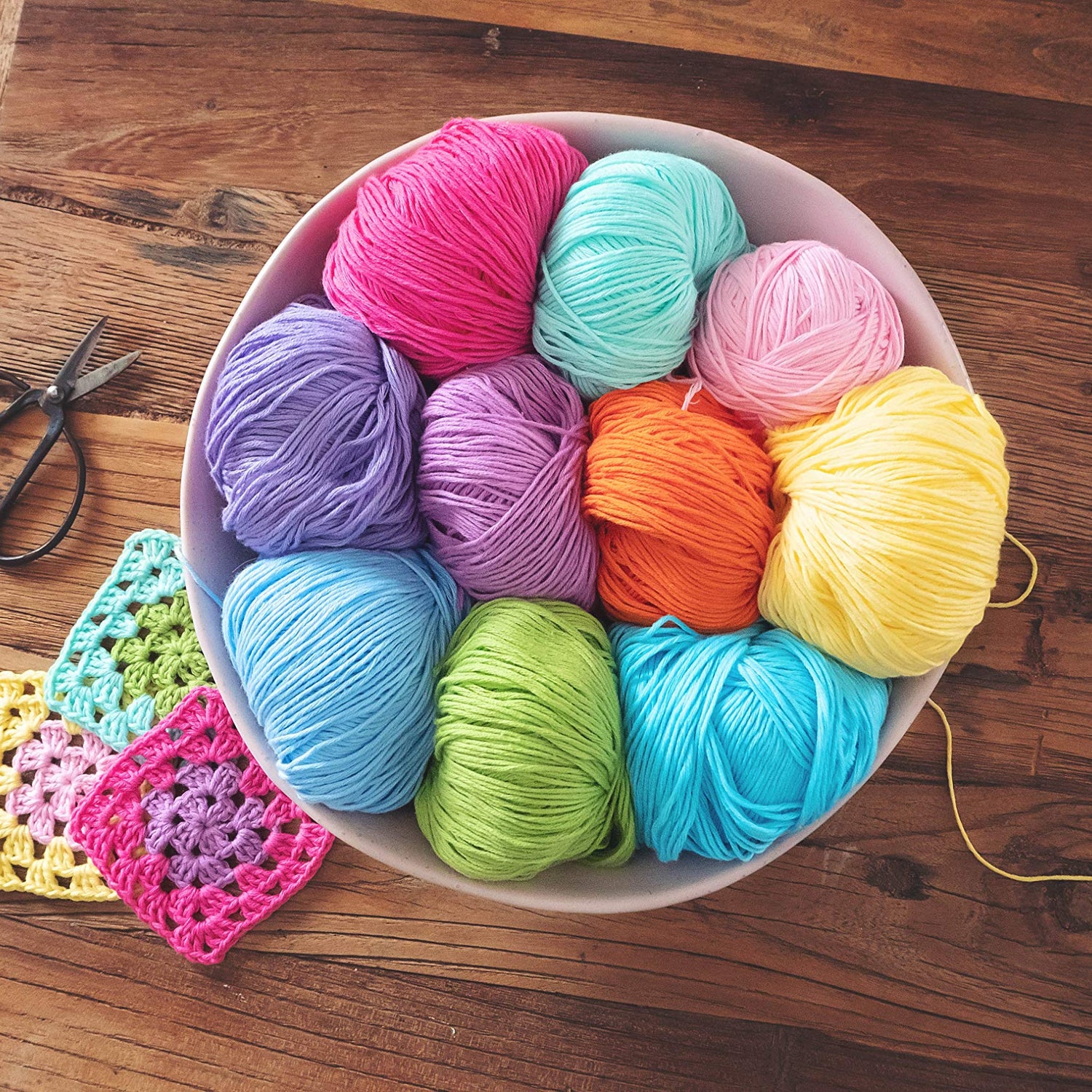 Studio Sam Pure Cotton Yarn Set for Knitting and Crochet. Pack of 10 Skeins, Total 1850 Yards. Great for Baby Blankets and Clothes. Boho Brights Collection.