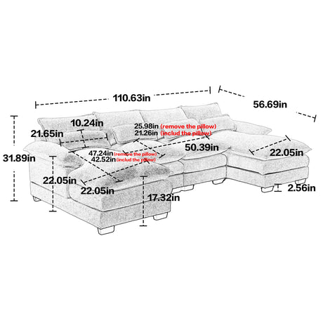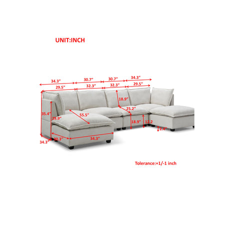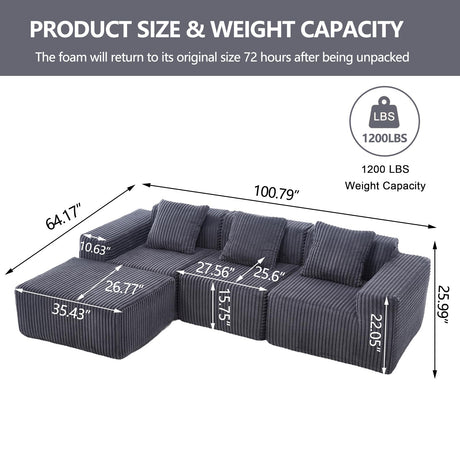 Anabei Modular Washable 5-Seater Corner Sectional in Ash | Deluxe+ Seat | Cloud Pillow