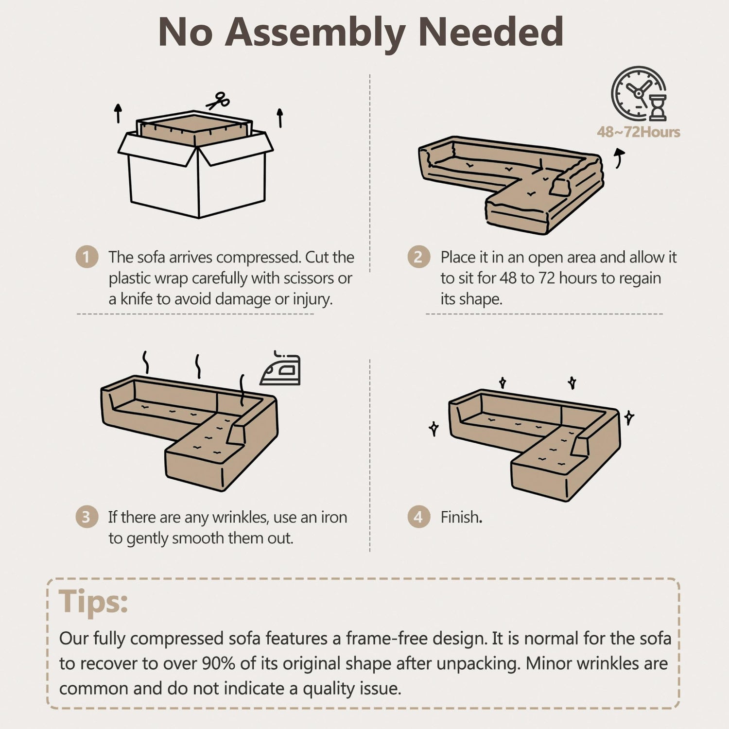- "Convenience of No Assembly": Effortlessly enjoy your new sofa from the moment it arrives—no tools or assembly required, for a seamless setup.
