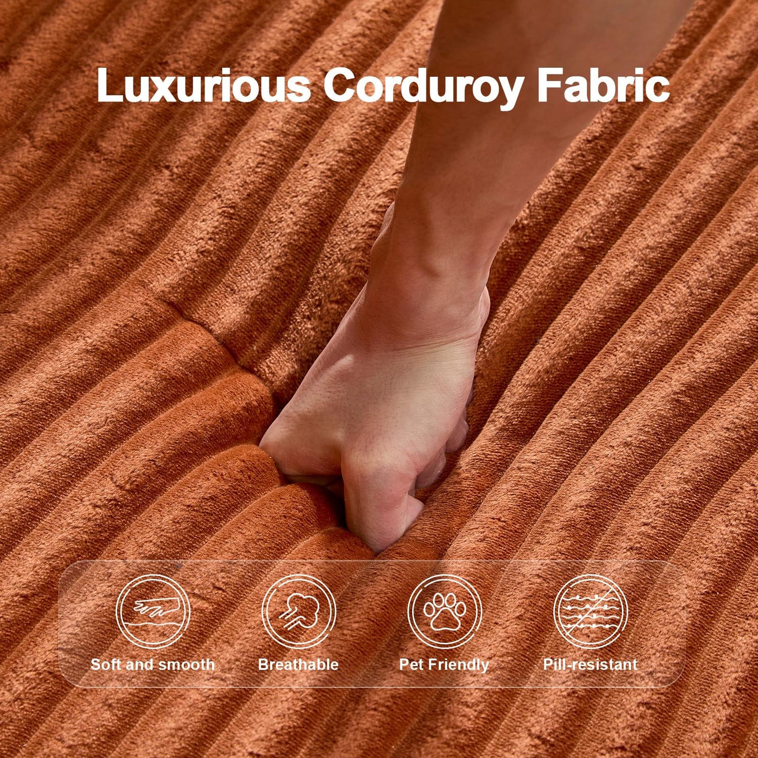 • 【Soft Corduroy Fabric & High-Density Foam】Upholstered in breathable, soft striped corduroy fabric that is skin-friendly and resistant to pilling. The high-density foam filling offers ergonomic support and pressure relief, delivering both comfort and durability whether you're sitting or sleeping.