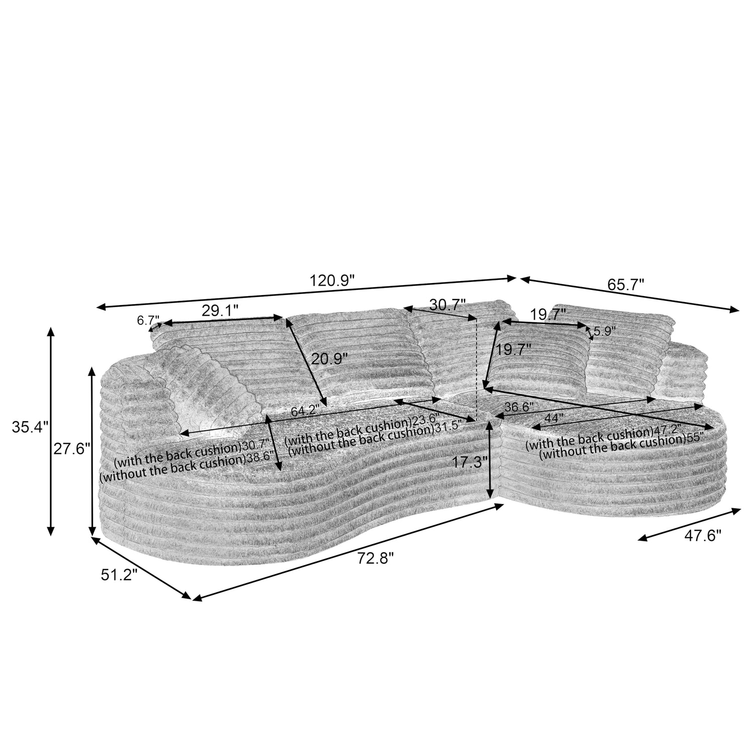 - Curved Chaise Couch: Bask in unparalleled luxury with our interchangeable sofa collection, which embodies a spacious, cloud-like seating sensation. Revel in supreme ease with our couch with 47.2" curved lounge chaise, meticulously crafted from high resilience foam architecture and coil spring reinforcement