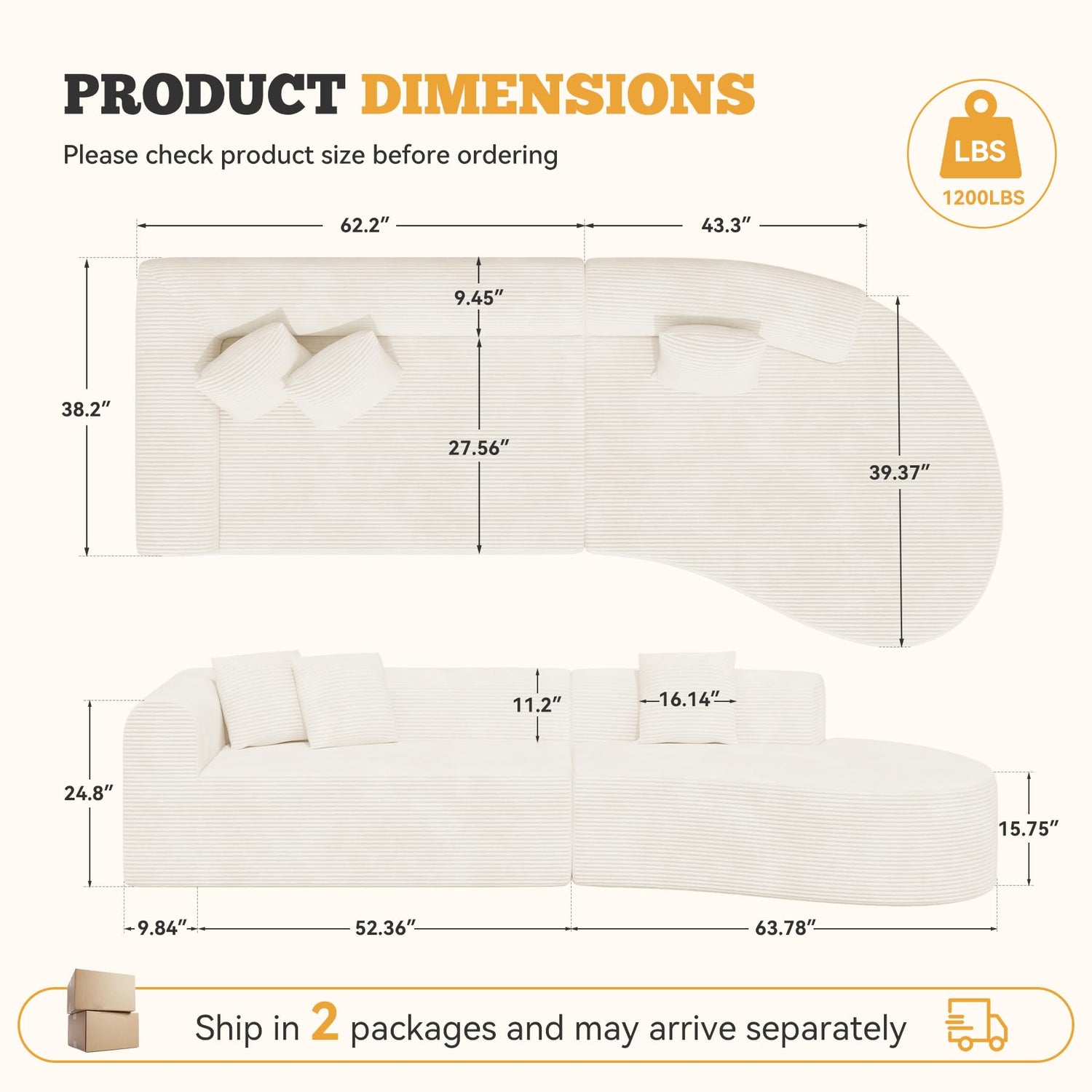 - 【Breathable Corduroy Fabric】 The modular sectional sofa features high-quality chenille fabric that is very Sturdy and not easy to pilling, which ensures long time use. At the same time, its breathability makes the sofa more comfortable, allowing you to feel refreshed and cosy while sitting on it. Enhance your living space with this elegant and comfort modern curved sofa.