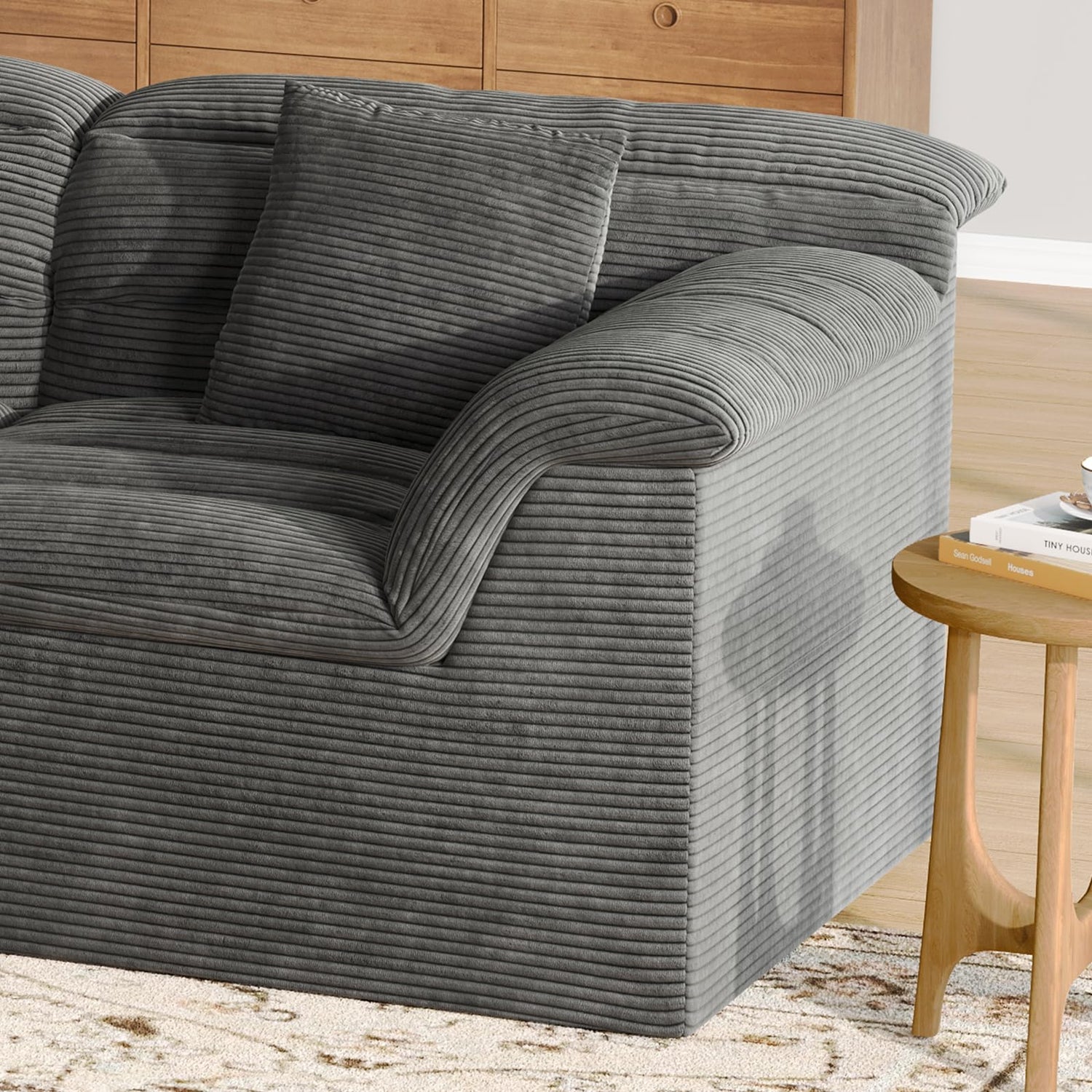 44" Modern Sectional Sofa, Upholstered Corduroy Cloud Couch with Deep Seat, Comfy Boneless Loveseat for Living Room, No Assembly Required, Dark Gray, Right Side