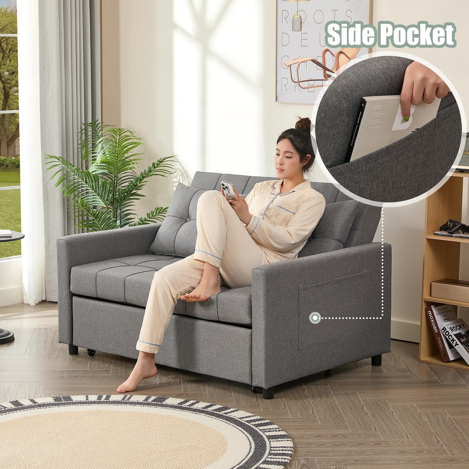 - Premium Material: This Convertible Sofa Bed is built with a sturdy steel frame, providing exceptional support and long-lasting durability. And it has undergone rigorous testing before leaving the factory—its key components are proven to withstand over 10,000 uses. Equipped with USB ports on the side (5V/2A, 10W), this sleeper sofa allows for safe and reliable device charging, making it perfect for everyday use.