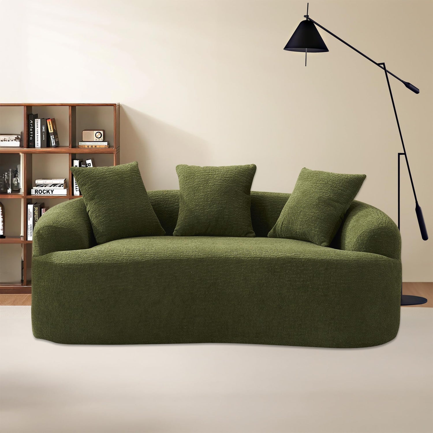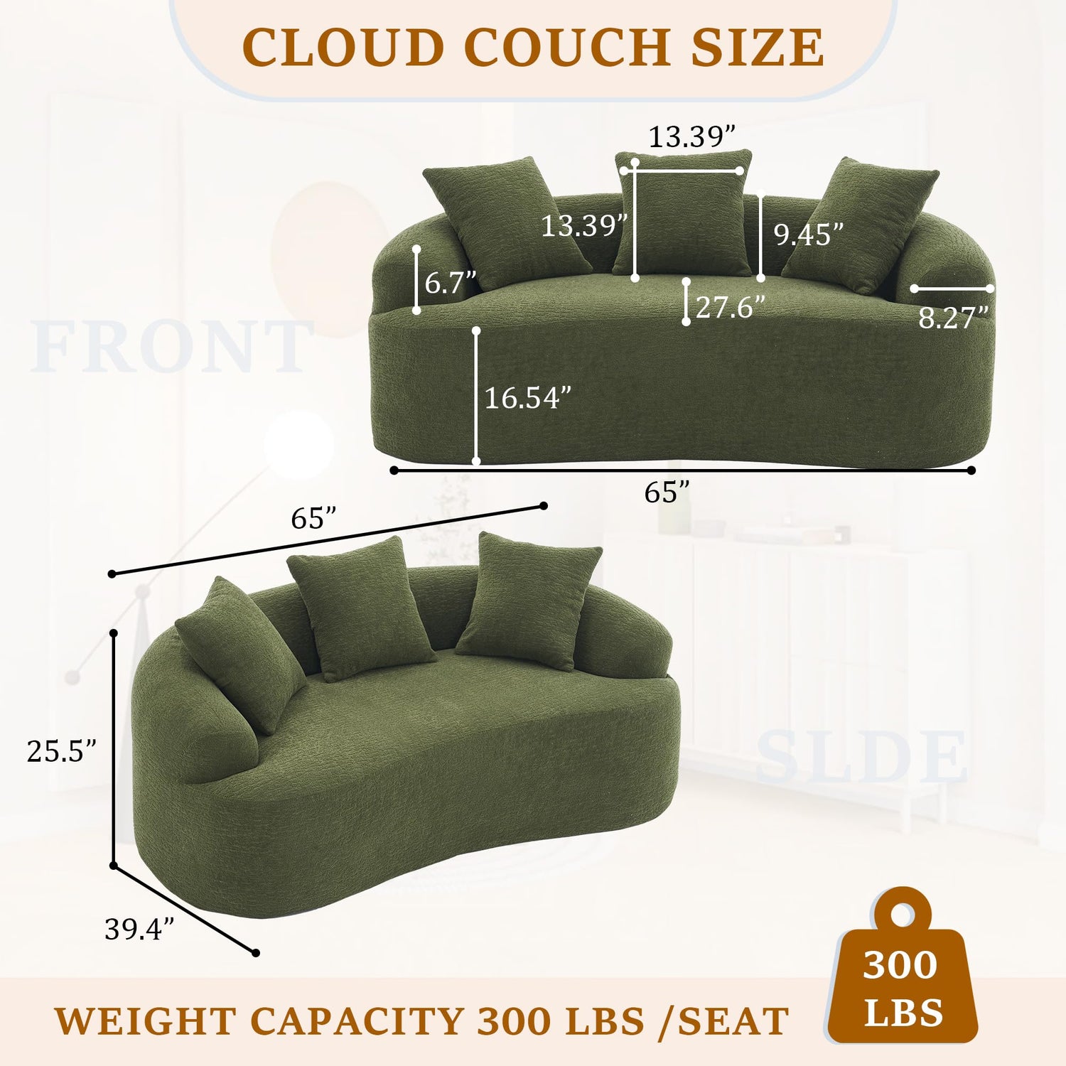 65'' Modern Curved Cloud Loveseat Sectional Sofa for Small Spaces, Luxury Plush Chenille Deep Seat Couch with 3 Pillows, No Assembly Needed Apartment Living Room Furniture, Green