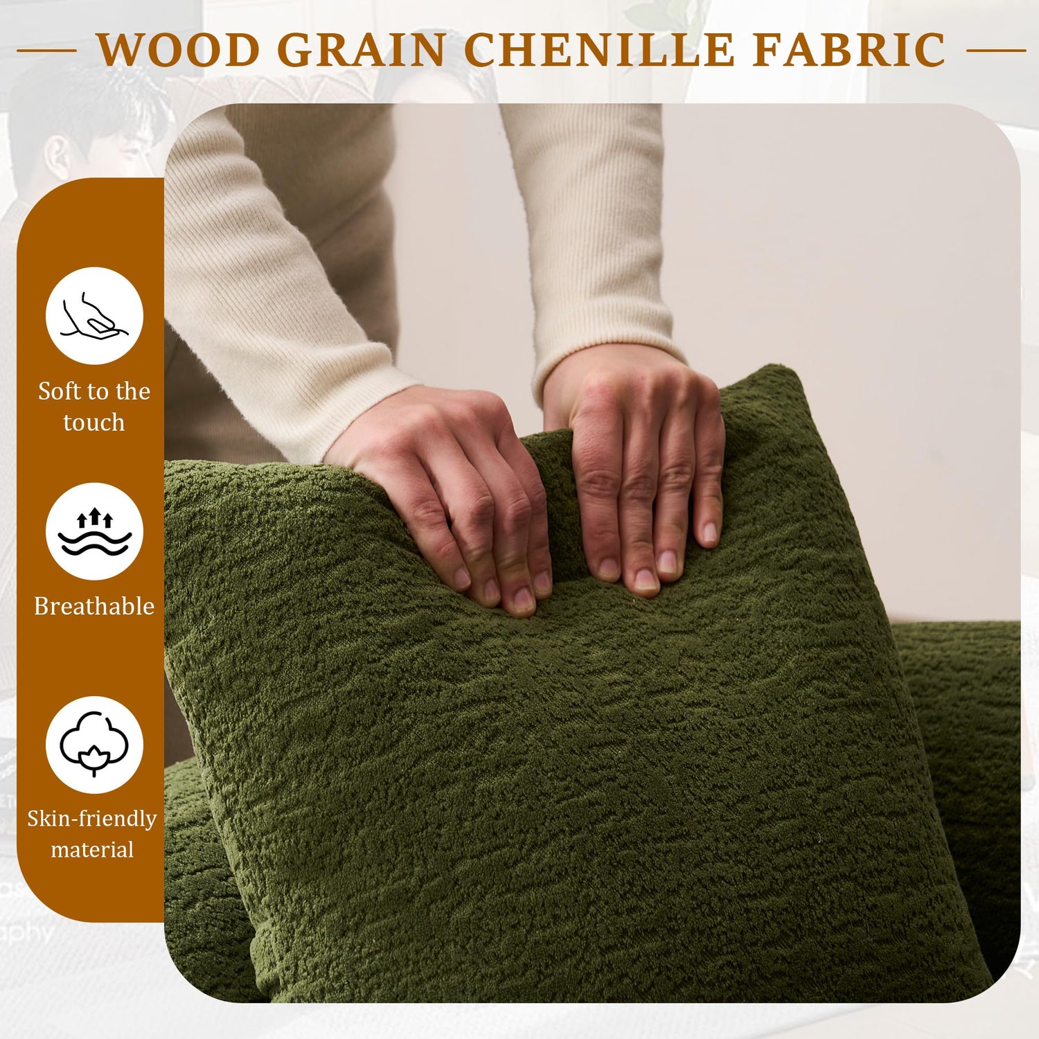 - Premium Wood Grain Chenille Fabric | Stain-Resistant & Plush: Upholstered in soft wood grain chenille fabric, this couch balances durability and luxury. The textured surface resists stains and pet hair, while the plush cushioning adapts to your body for cloud-like comfort.