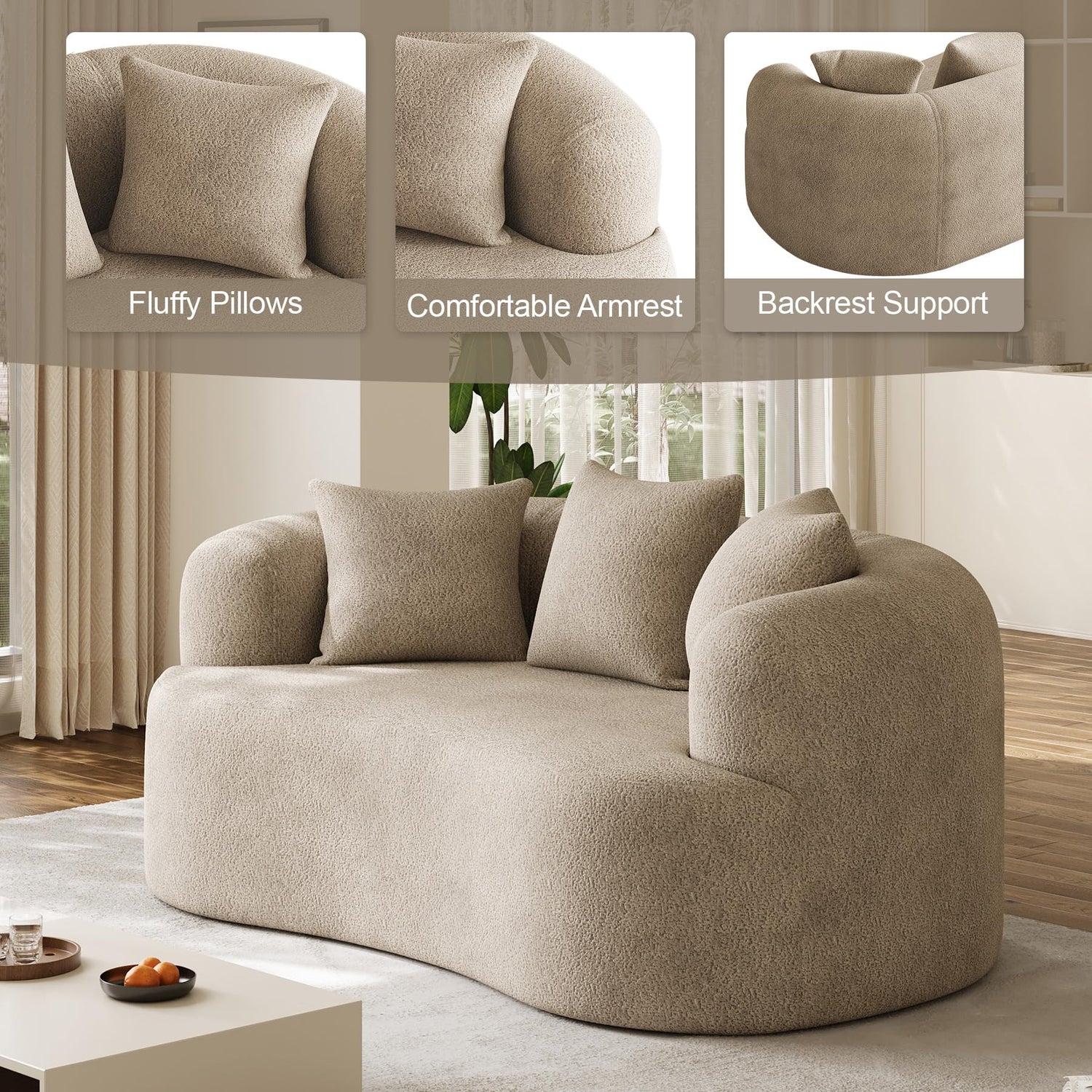 68.5" Loveseat Sofa for Living Room, Modern Luxury Plush Chenille Extra Deep Seat Curved Cloud Floor Couch with 3 Throw Pillows for Small Spaces, No Assembly Needed, Light Brown