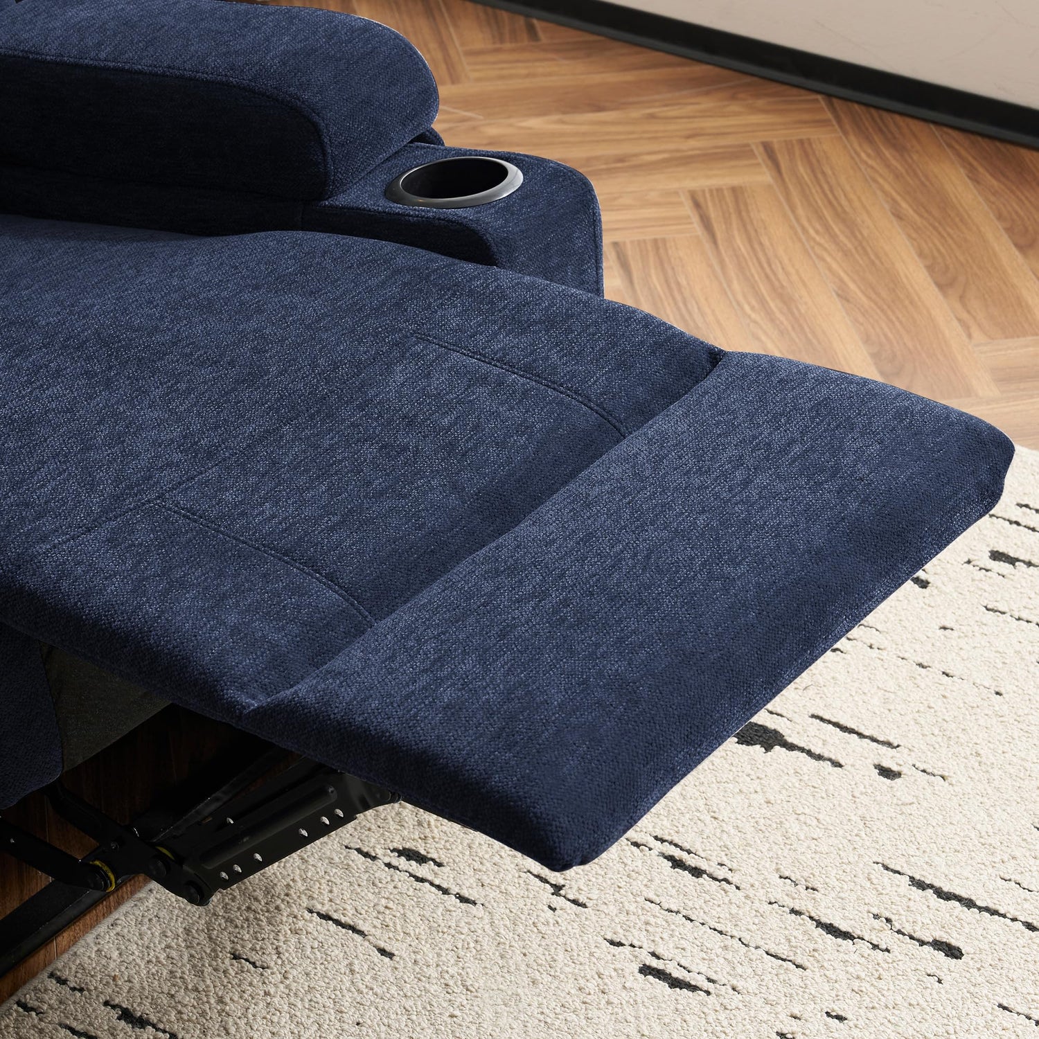 • Dual Cup Holders & Central Armrest Convenience Relax with your drink right where you need it. The two built-in cup holders offer spill-free sipping during movie nights, while the padded center armrest doubles as a comfort station or compact work surface.
