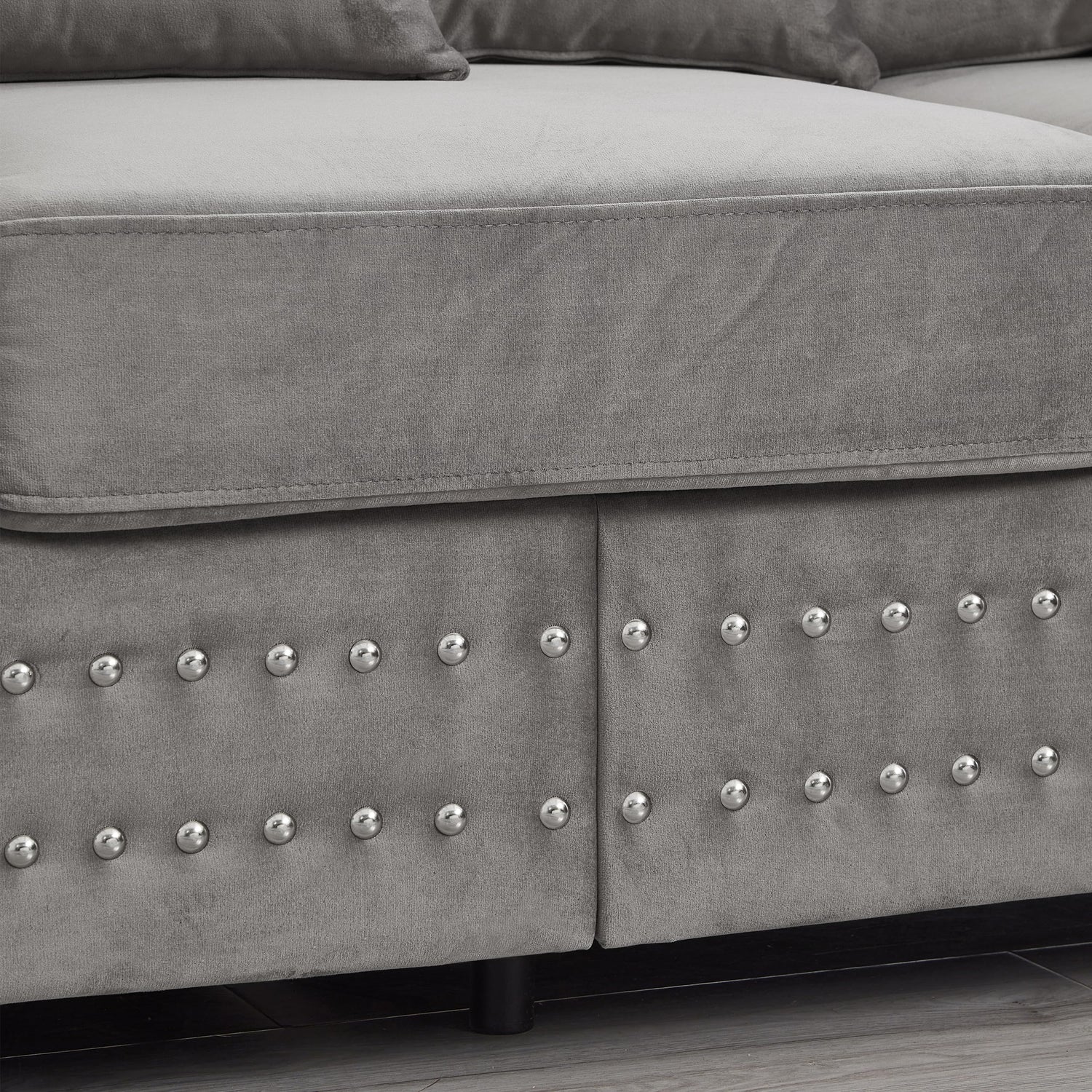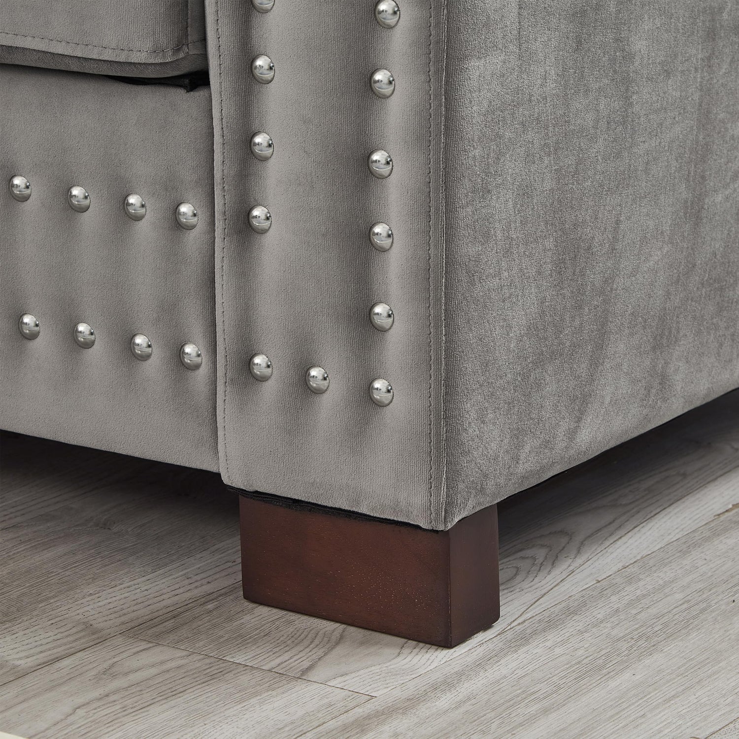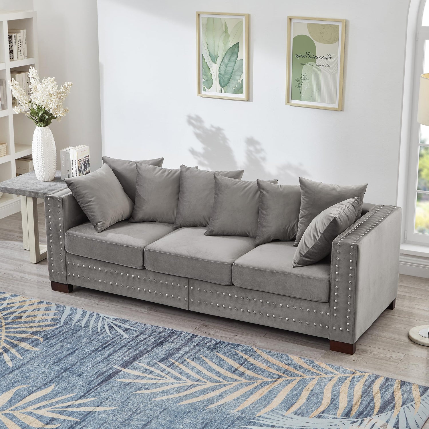 - 【Modern Elegance & Luxurious Design】Upgrade your living space with this chic velvet sofa, featuring square arms, silver nailhead trim, and a mid-century modern silhouette. The handcrafted nailhead detailing adds a luxurious touch, while the soft, skin-friendly velvet fabric enhances both style and comfort. Available in apricot, grey, black, and green velvet to match any decor.