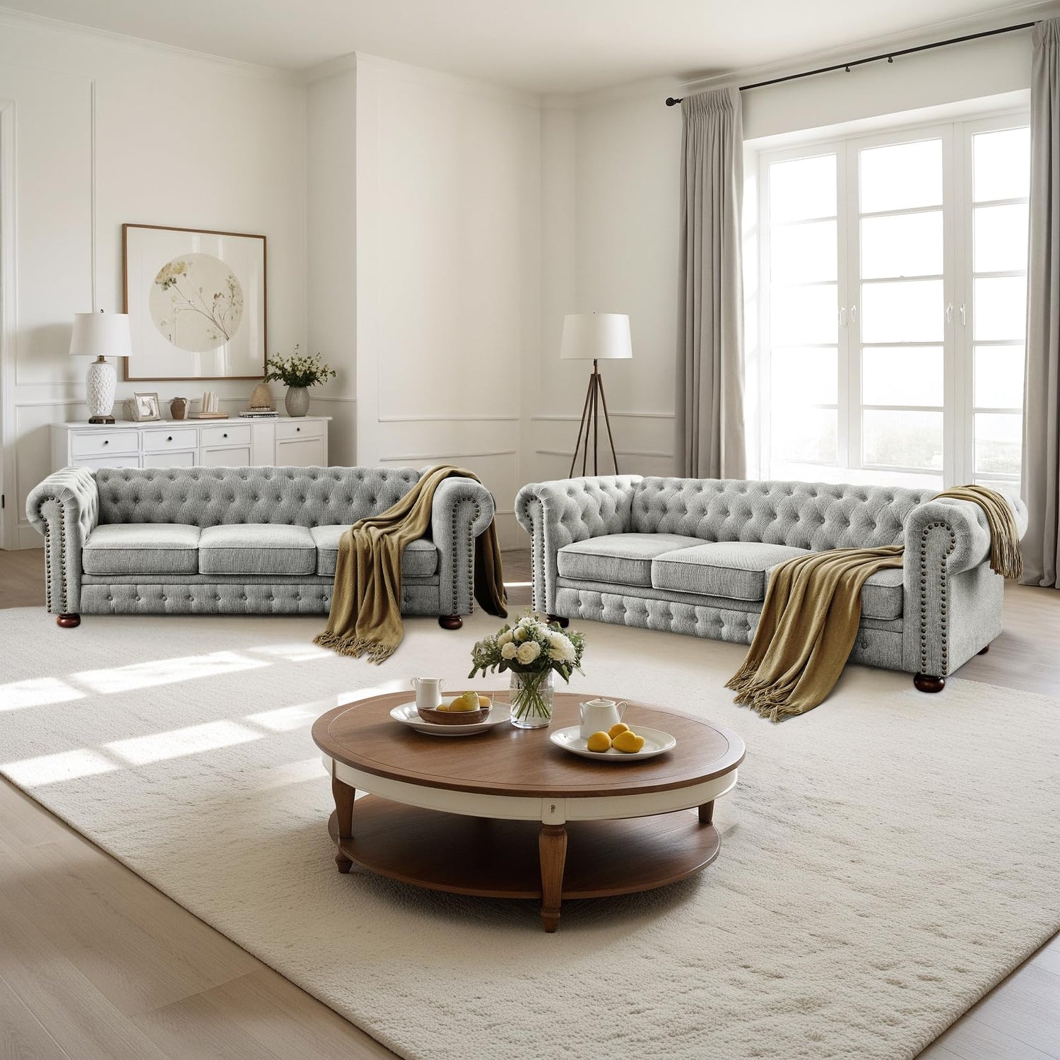 - Design Inspiration: The design of this linen sofa is inspired by the classic Chesterfield style, incorporating classic design elements such as deep button tufting and nailhead rolled armrests. Exquisite gourd legs further enhance the modern beauty, perfectly blending traditional charm with modern style