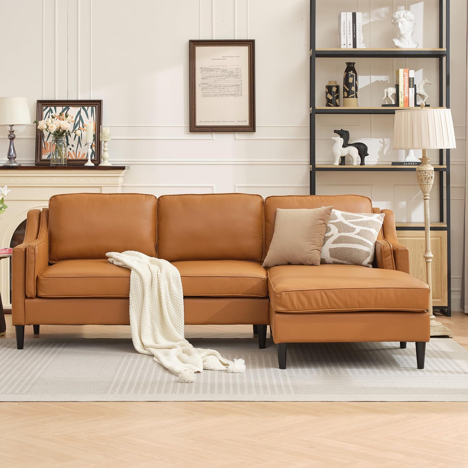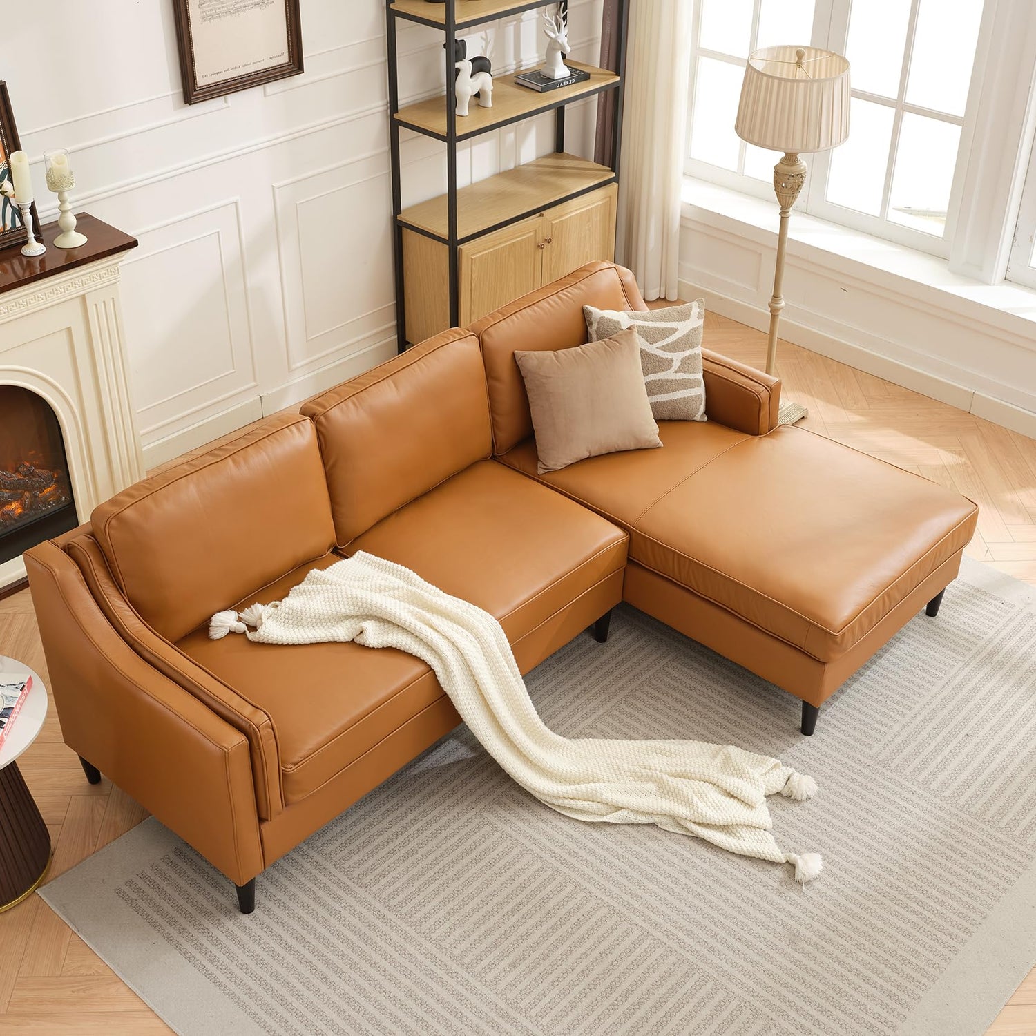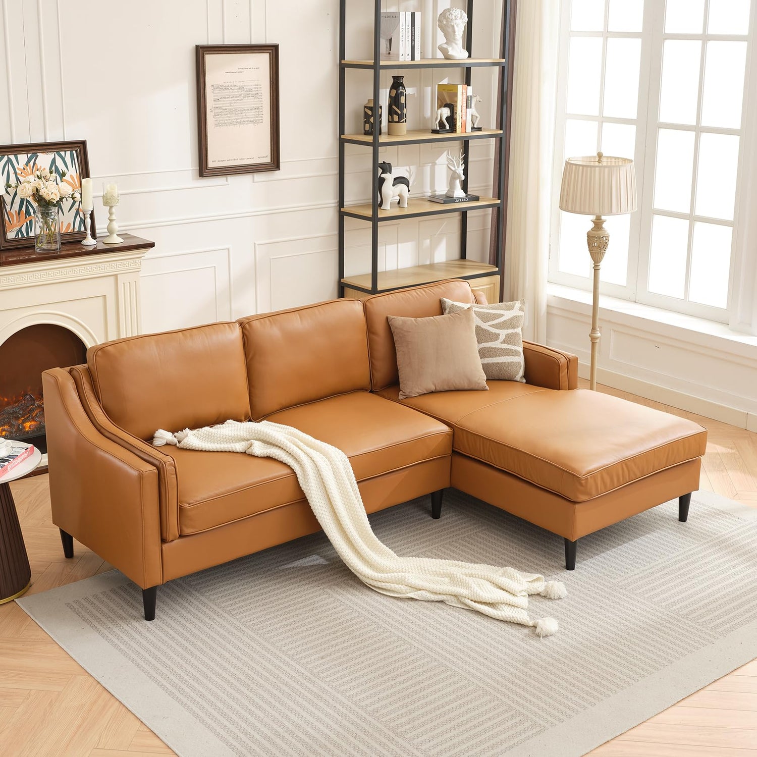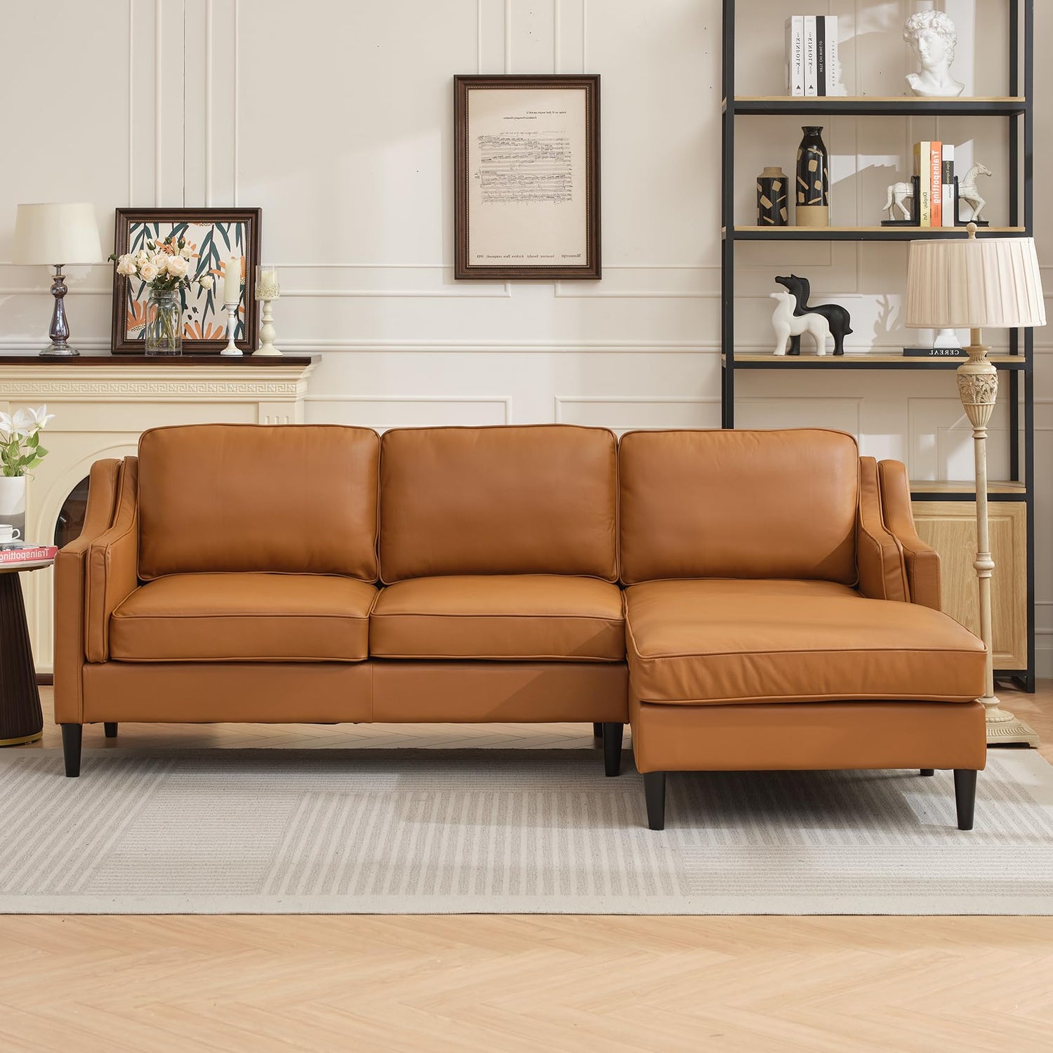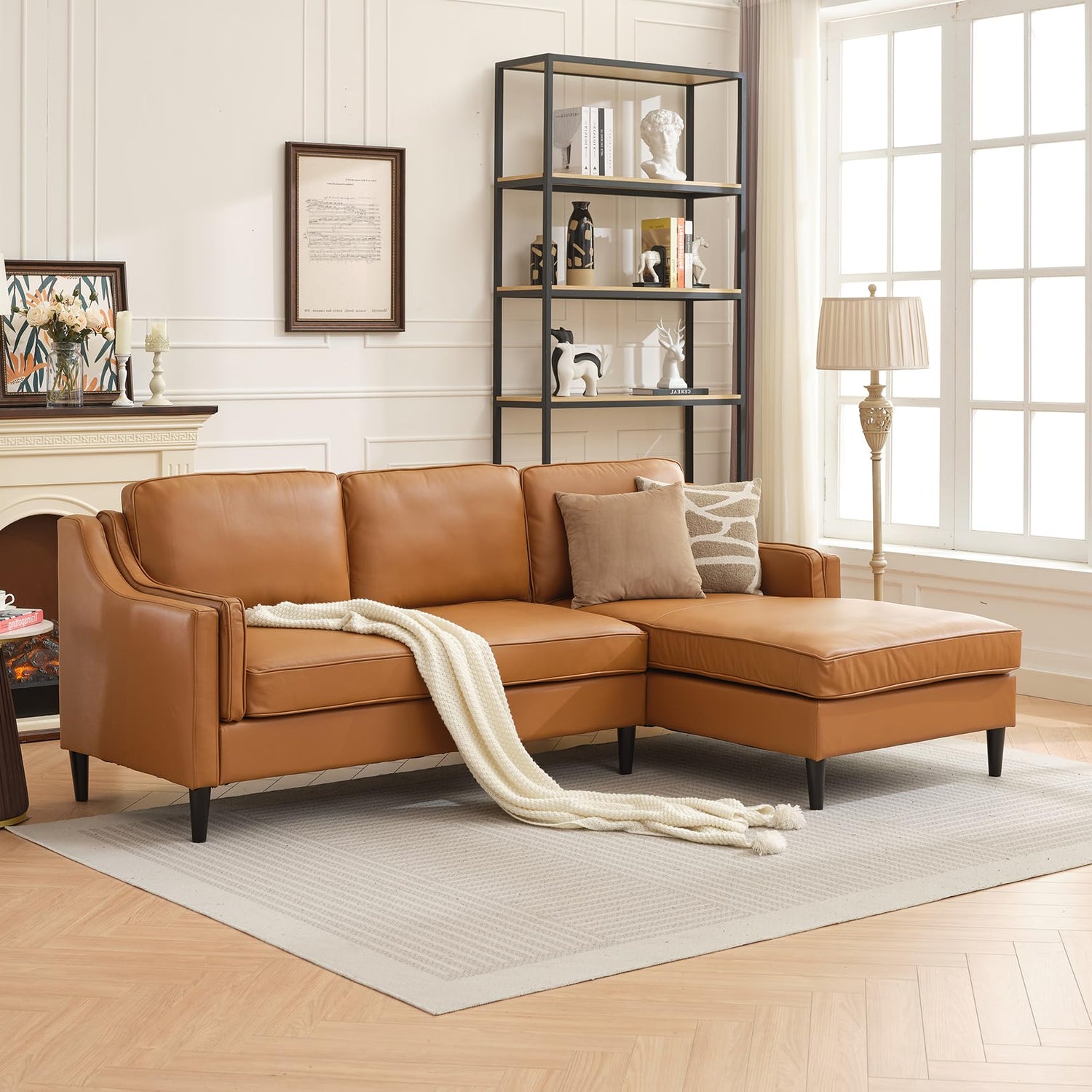 • Our sectional sofa features a sleek line that beckons the mixture of mid-century and modern styles, making it suitable for office conversation, living room relaxation, and more. The classic 2 colors leather also gives the sectional sofa an up-scale outlook and a boost of style.
