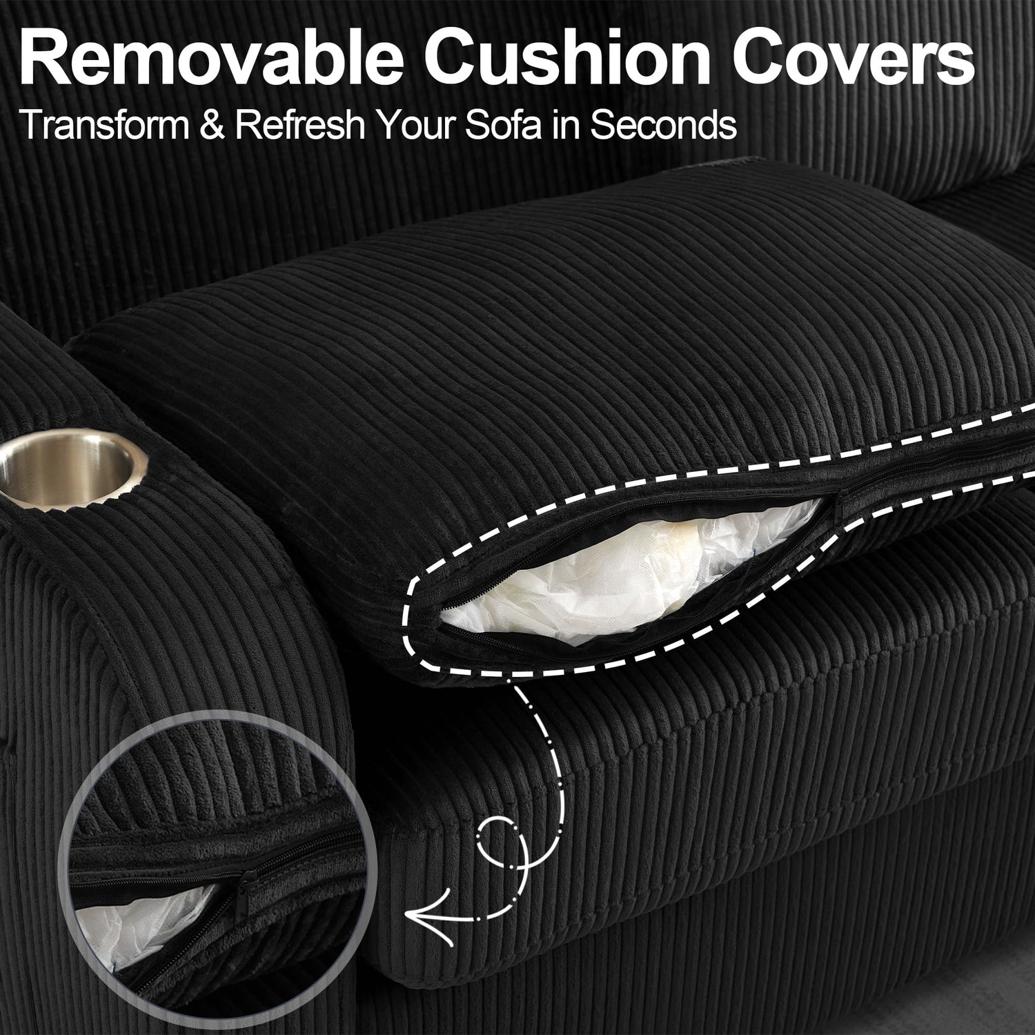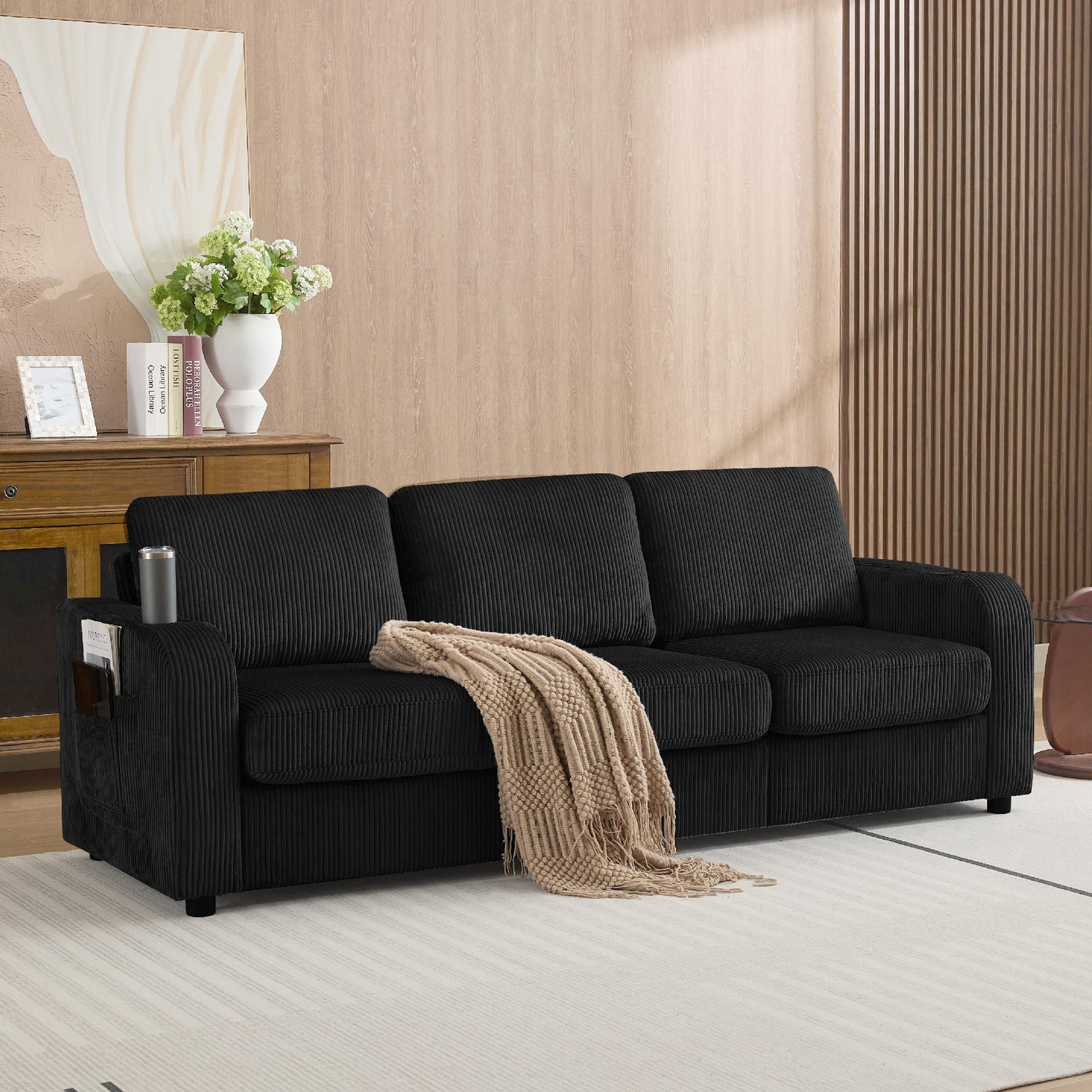 Abbrevi 87.4" Oversize 3 Seater Couch,Upholstered Sofa for Living Room,Modern Deep Seat Comfy Loveseat Couch with Cup Holders,Corduroy Love Seat Sofa (Black)