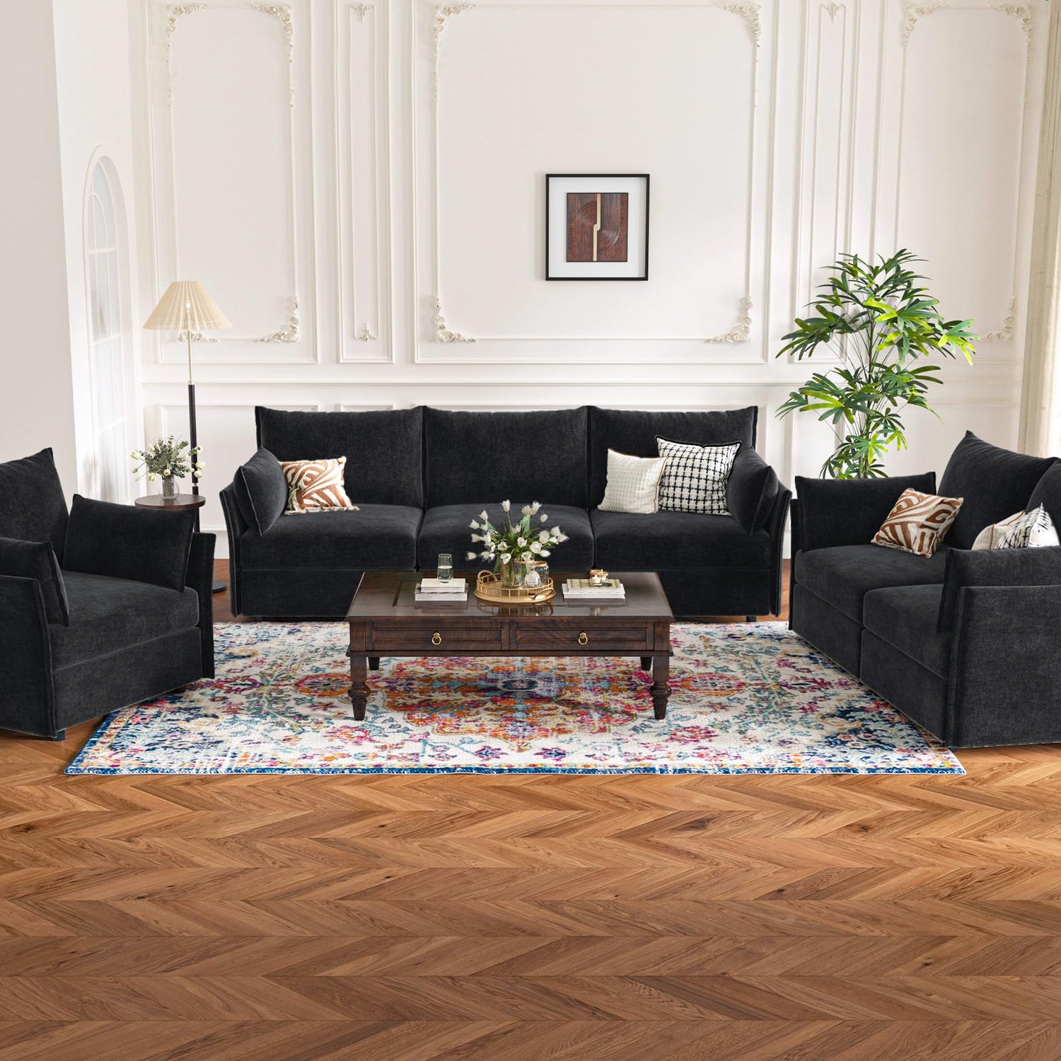 • 💡 Premium Chenille Fabric - The modern sofa is upholstered in premium chenille fabric that feels luxurious to the touch, offering both comfort and durability. The material is not only soft and inviting but also non-pilling and won't stain, ensuring long-lasting quality.