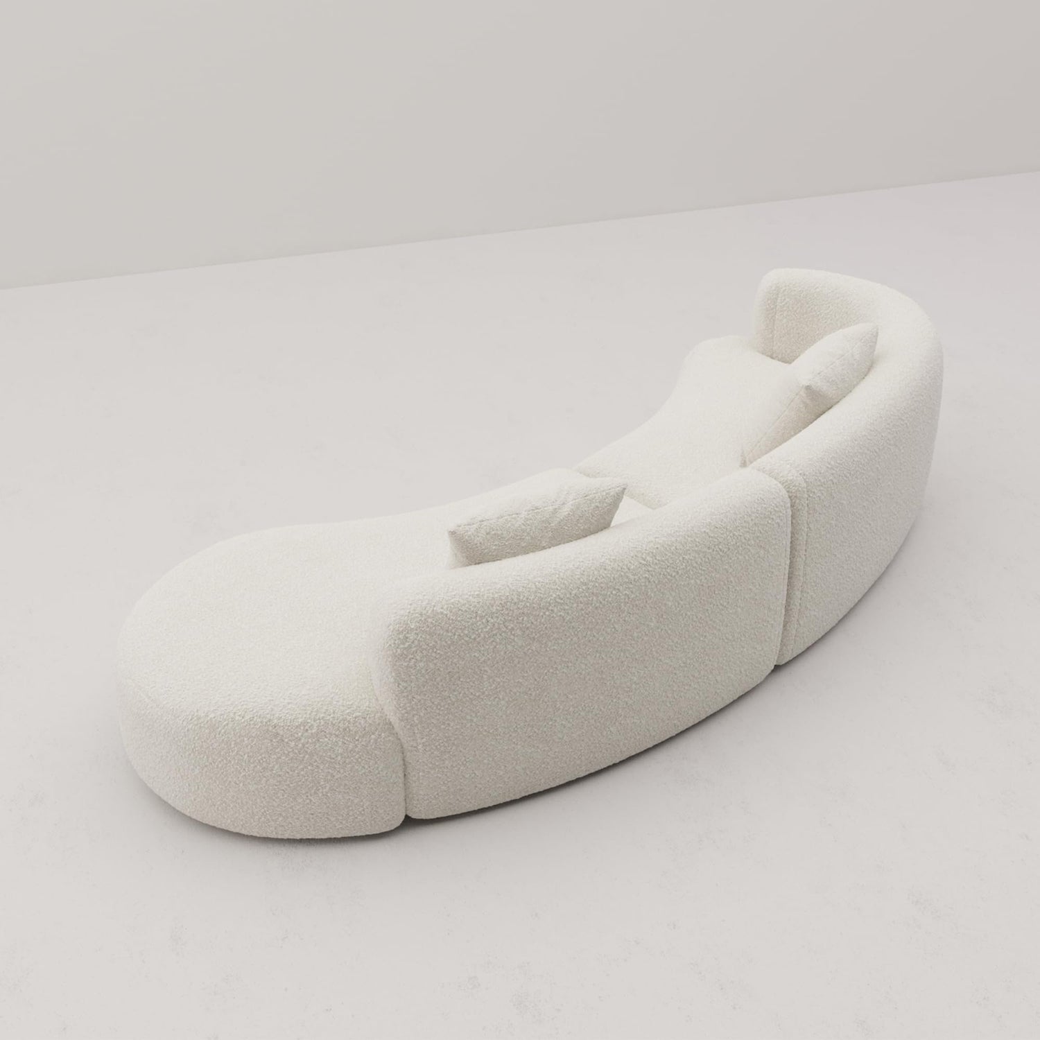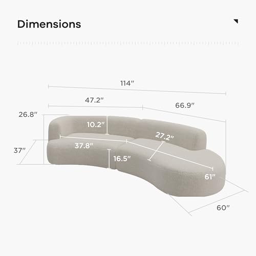 - Easy care: The modern curved sofa is easy to assemble, and comes in a box with 2 fluffy throw pillows. Simply wipe clean with a damp cloth. Overall dimension is W114 x D60 x H26.8, weight limit is 1000 lbs.