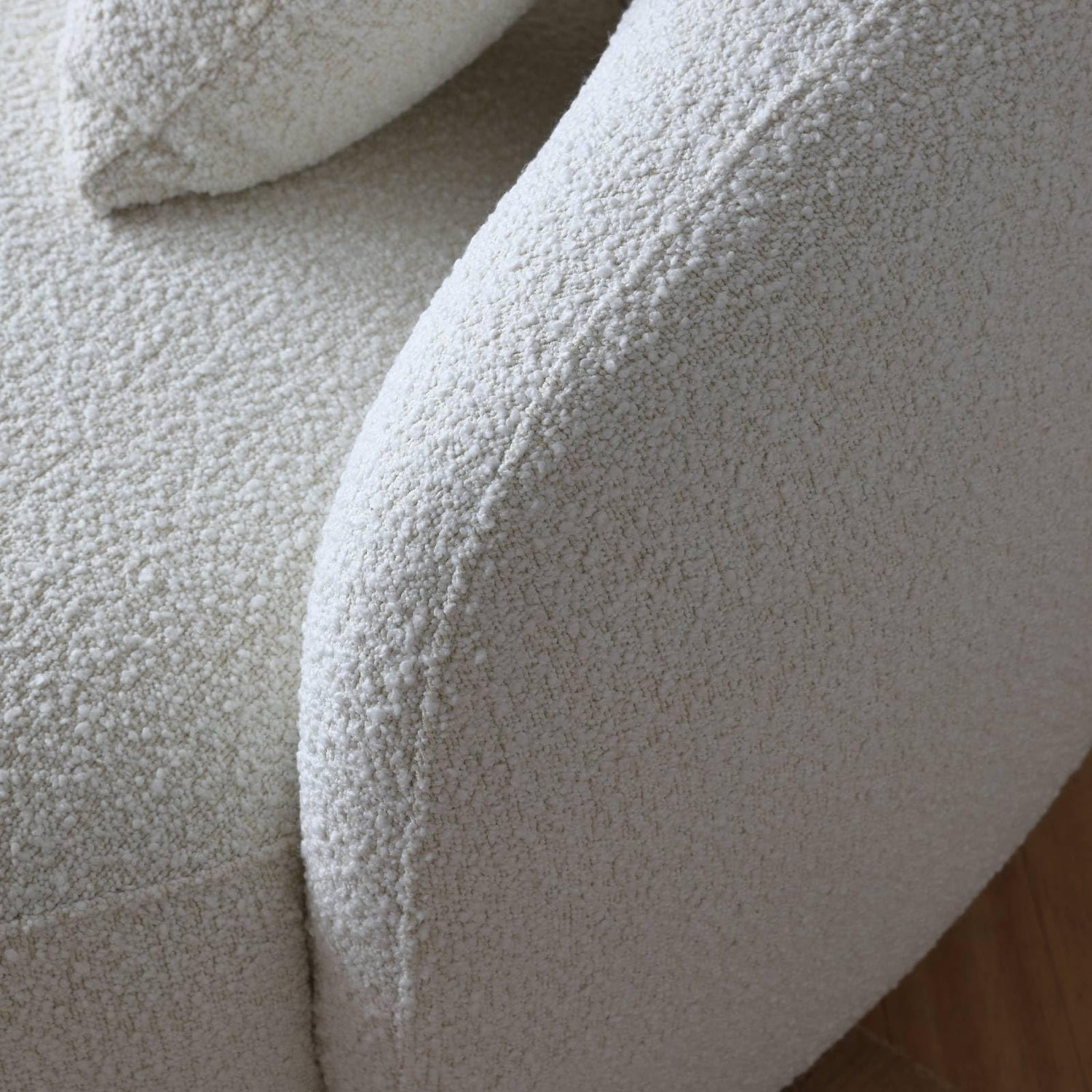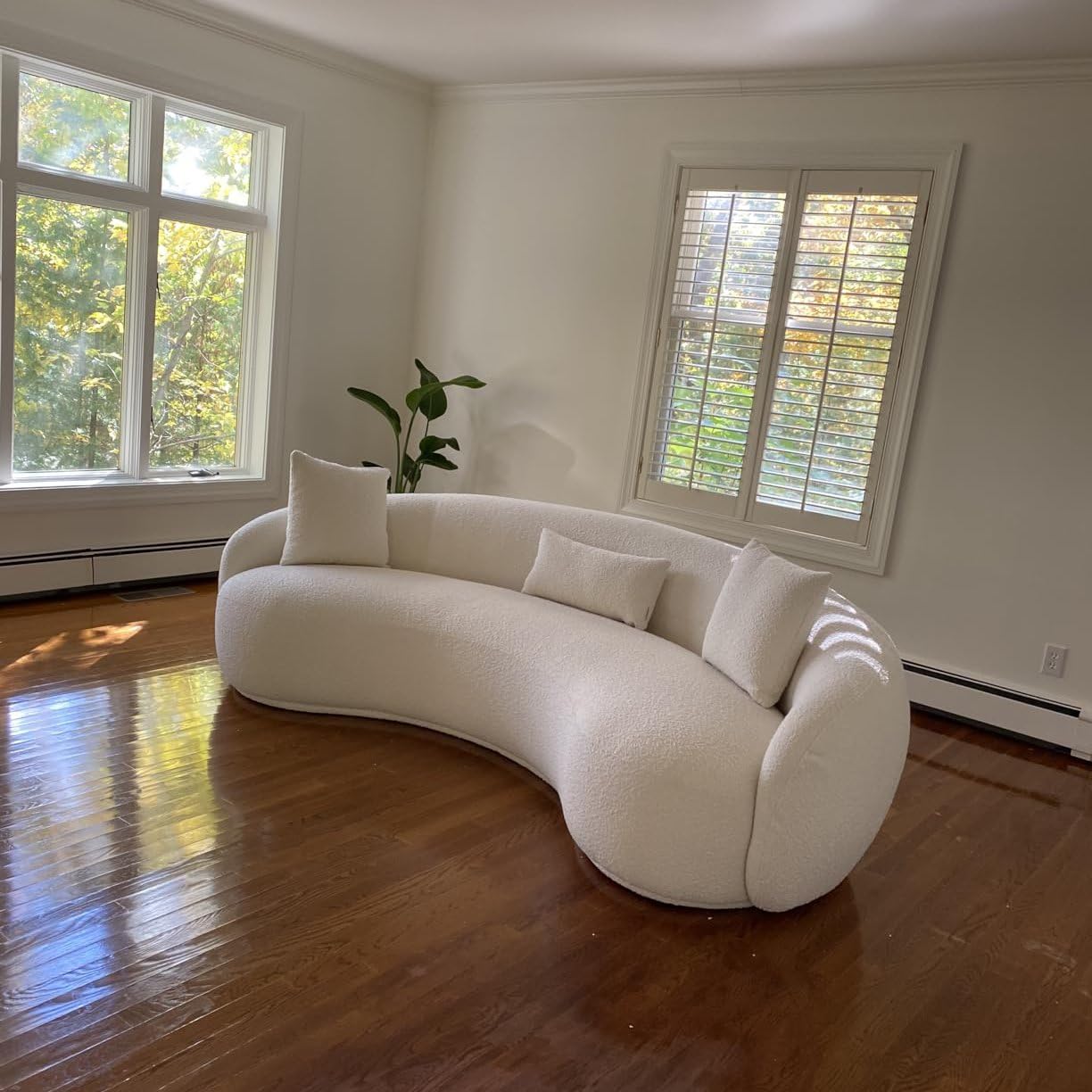 Details: This stunning white sofa for living room spaces combines contemporary design with luxurious comfort. Upholstered in premium boucle fabric, this curved couch sofa features an organic, flowing silhouette that creates a sophisticated focal point in any modern living space. The medium-firmness cushioning provides the perfect balance of support and relaxation, while the no-assembly design means you can enjoy your new furniture immediately upon delivery.