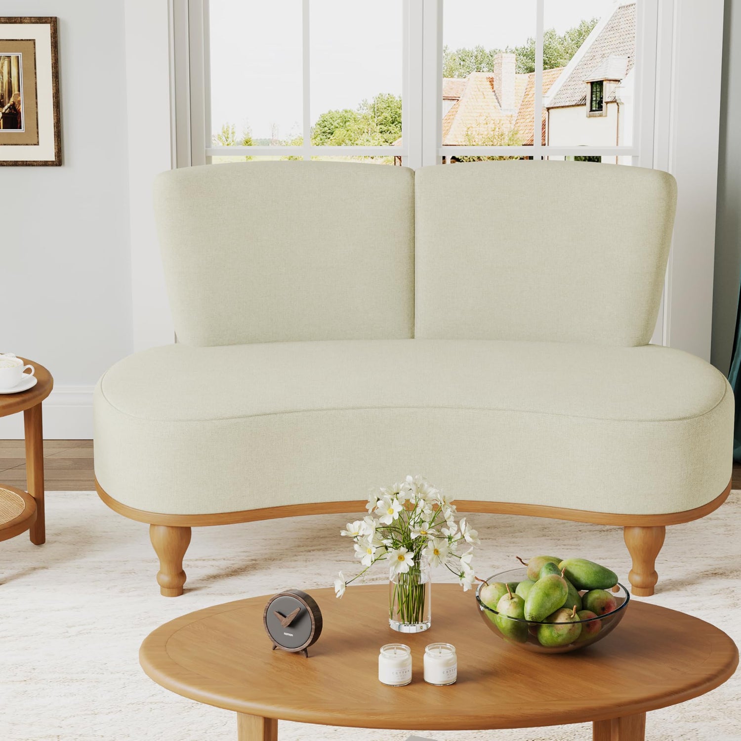 - Gourd-shaped Wooden Legs: ALISH loveseat is made of characterise gourd-shaped wooden legs which is modern and elegant. Wooden leg is also last long and the foot rubber will protect your floor from scratching.