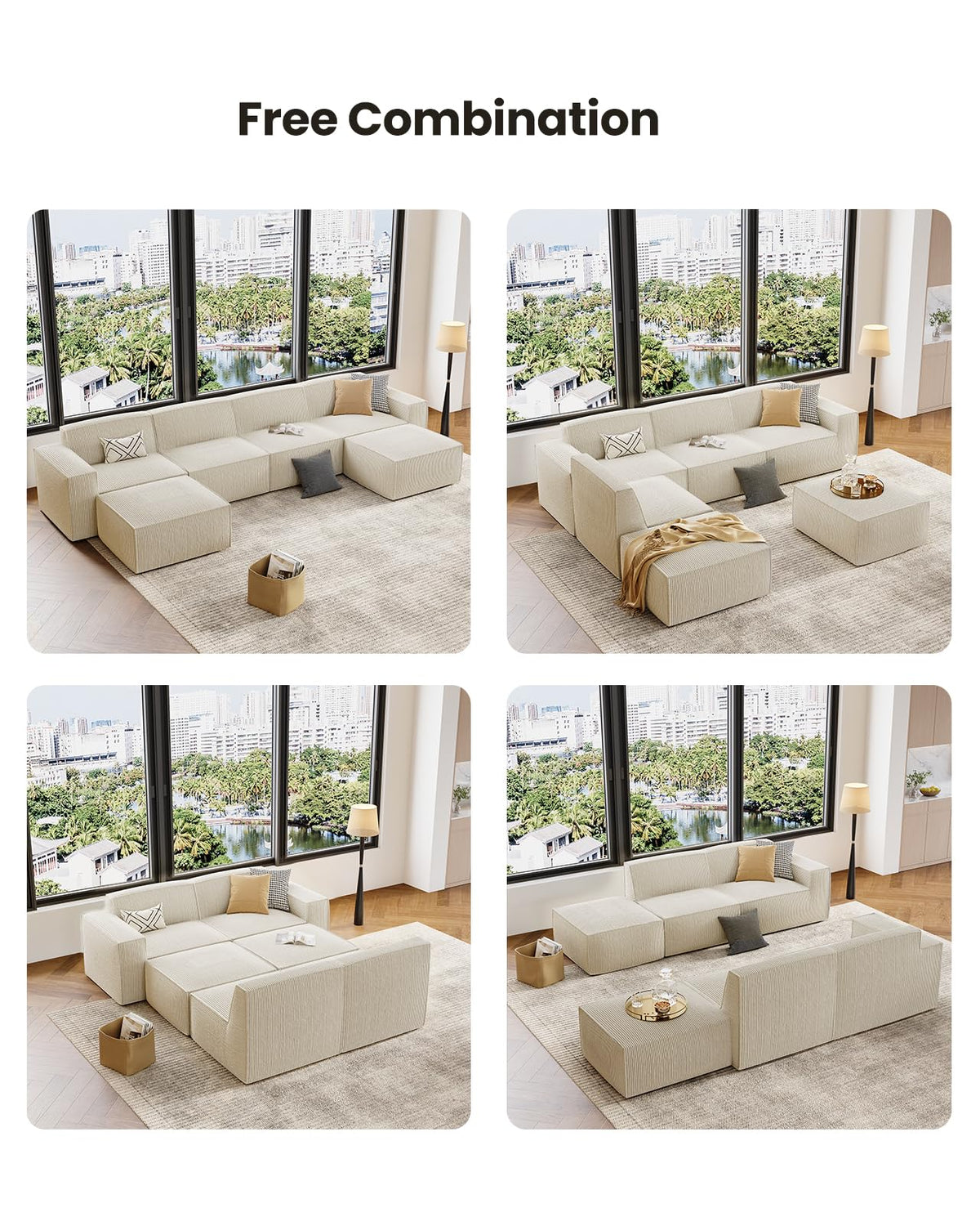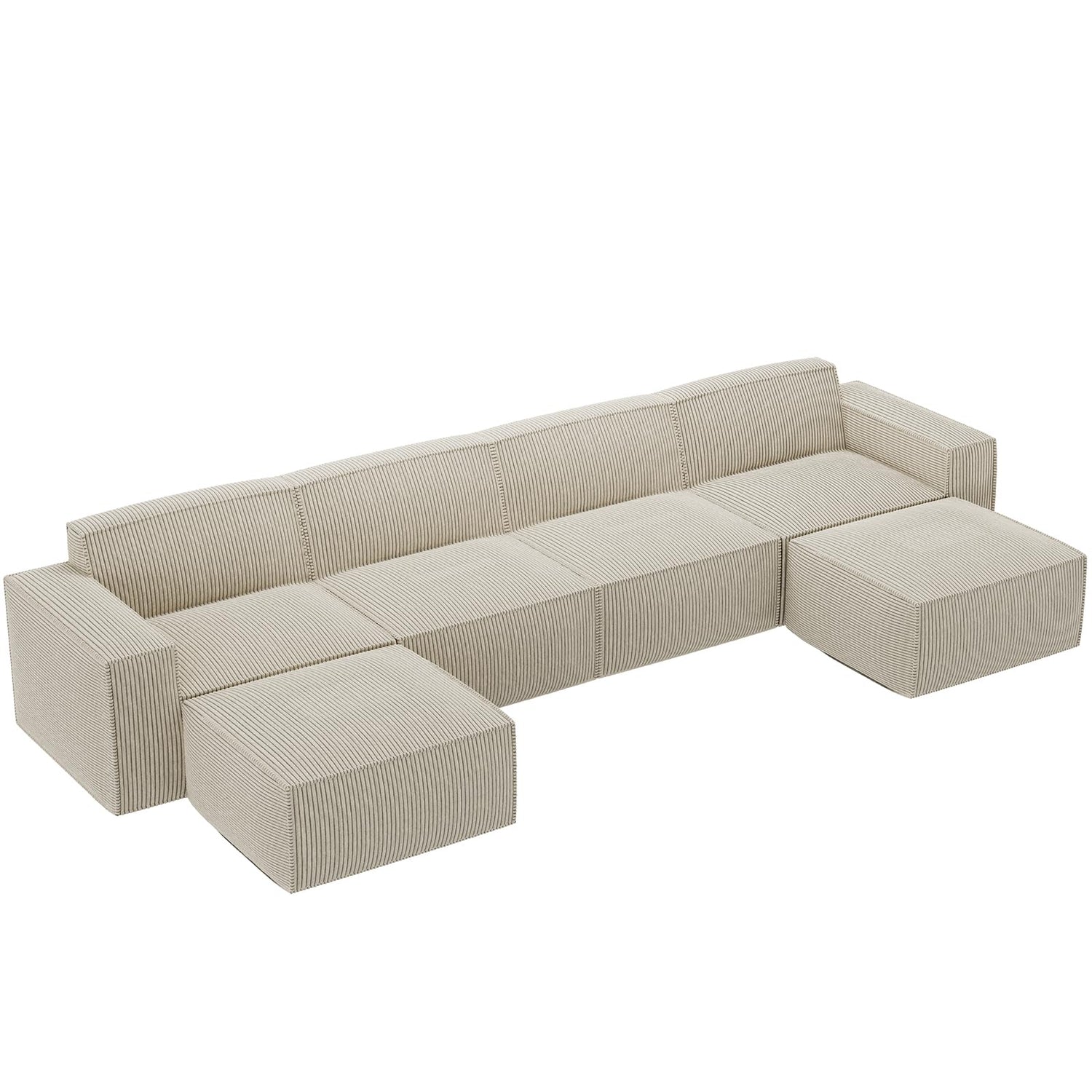 AMADA 142" Sectional Couch with L-Shape Chaise,Corduroy Cloud Couches with Deep Seats &High-Back,Upholstered Couches for Living Room Bedroom with Ottoman,No Assembly Required(4-seater&2 Ottoman,Beige)