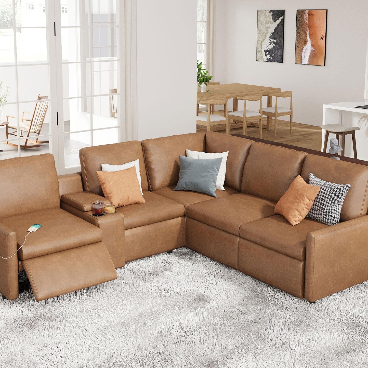- Modern Elegance: Achieve both aesthetics and comfort with the modern electric recliner sectional sofa. Its pure lines and geometric beauty create eye-catching look , enhances your living room decor.