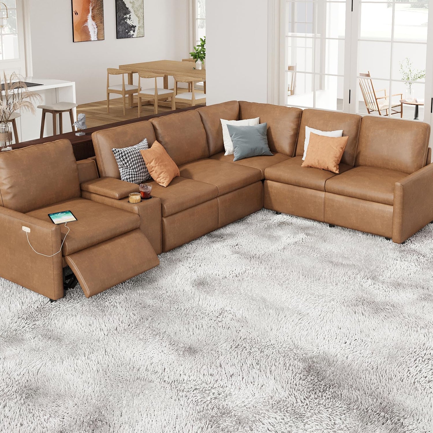 - Modern Elegance: Achieve both aesthetics and comfort with the modern electric recliner sectional sofa. Its pure lines and geometric beauty create eye-catching look , enhances your living room decor.
