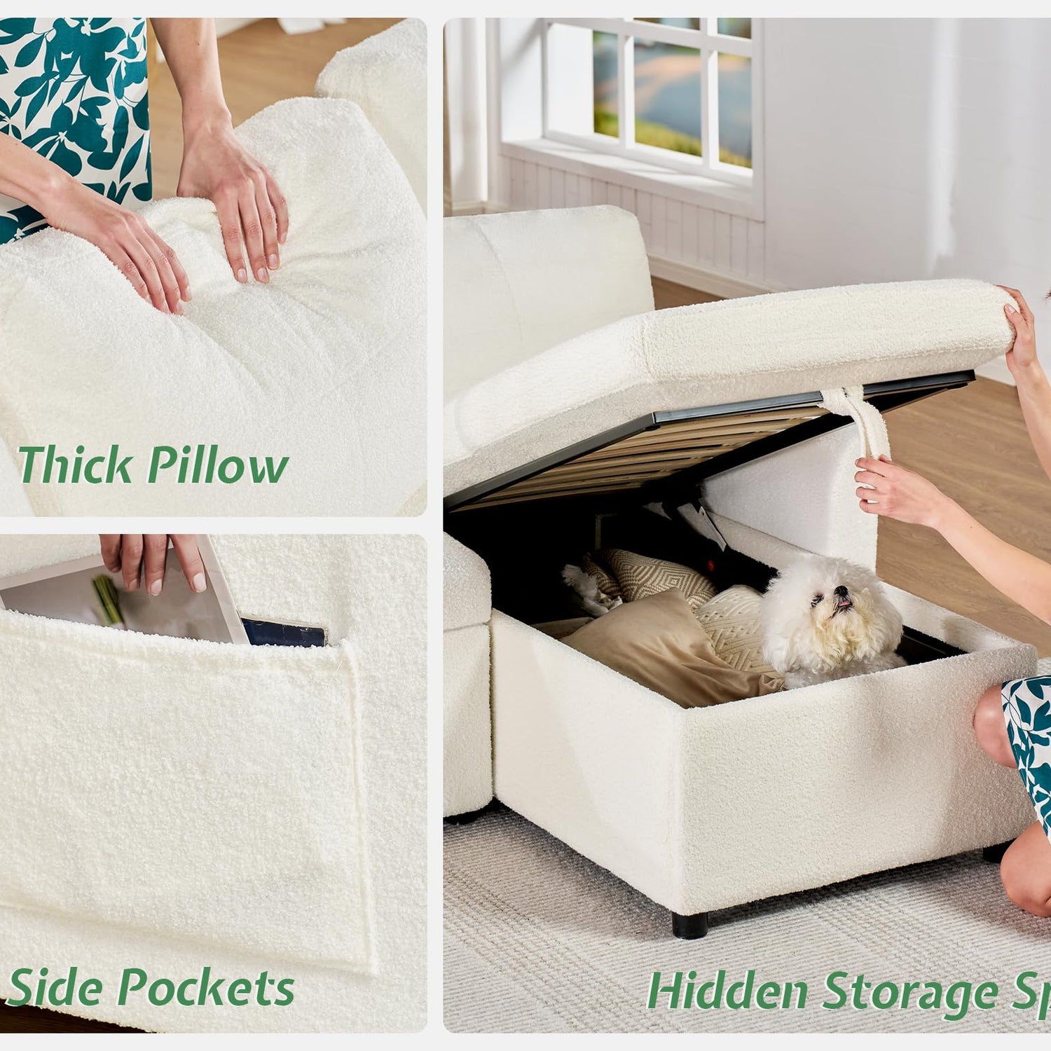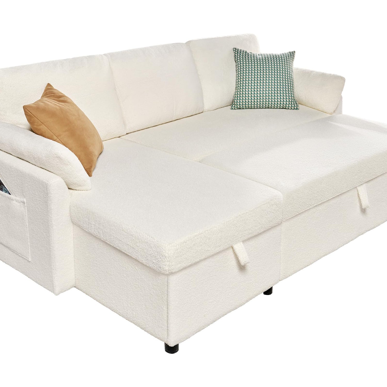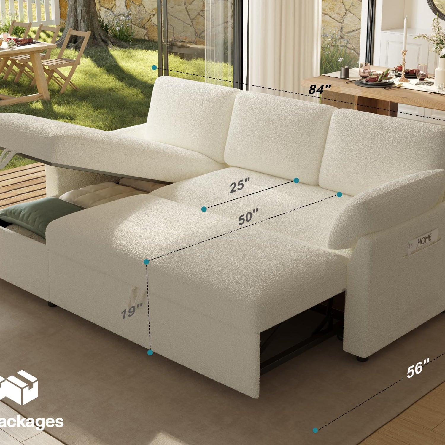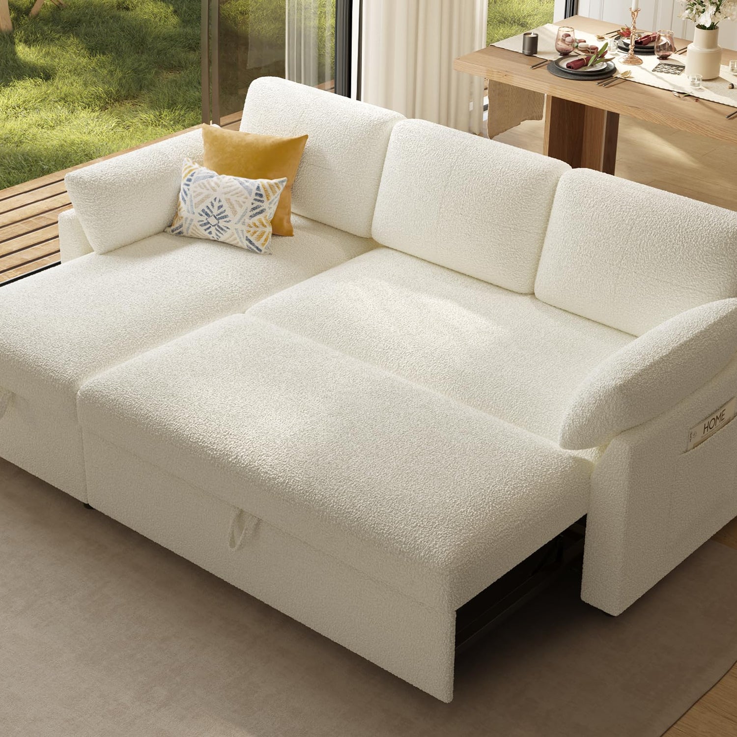 AMERLIFE Sleeper Sofa, 2-in-1 Sofa Bed with Storage Chaise, Pull Out Sofa Couch for Living Room, Guest Room, Boucle White