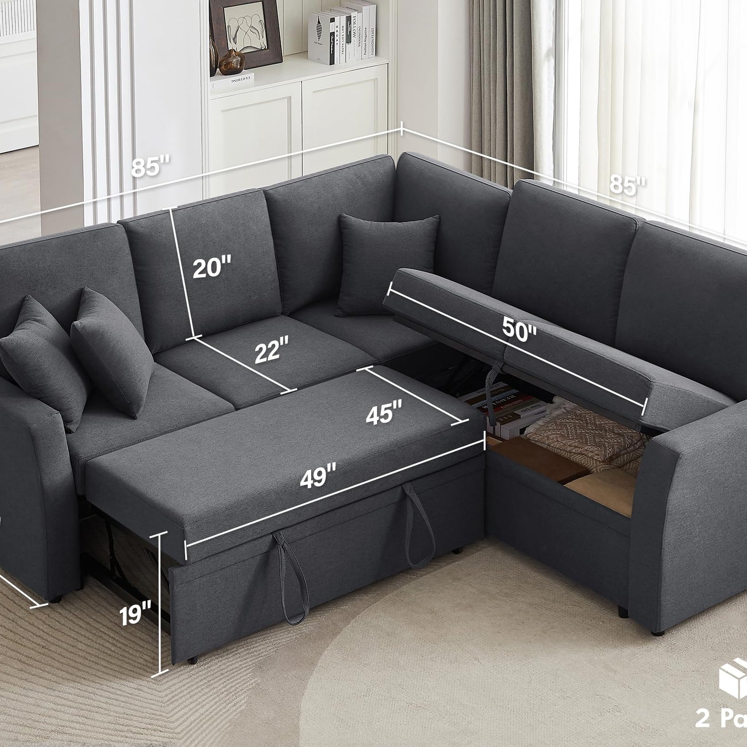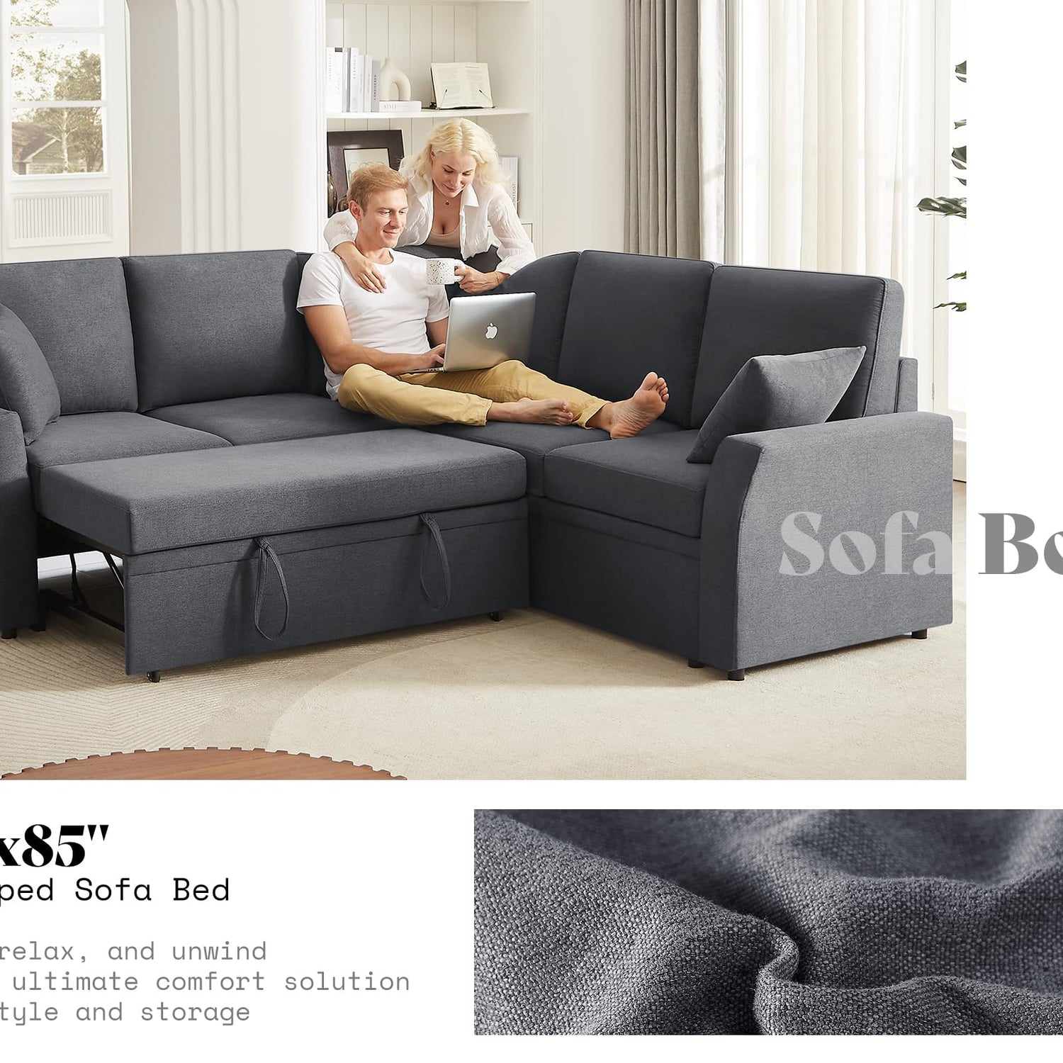 • Quick & Easy Conversion: Effortlessly switch from a sofa to a bed in seconds with a simple pull. The spacious 85" x 85" bed is perfect for guests or naps, offering ultimate convenience without the hassle.