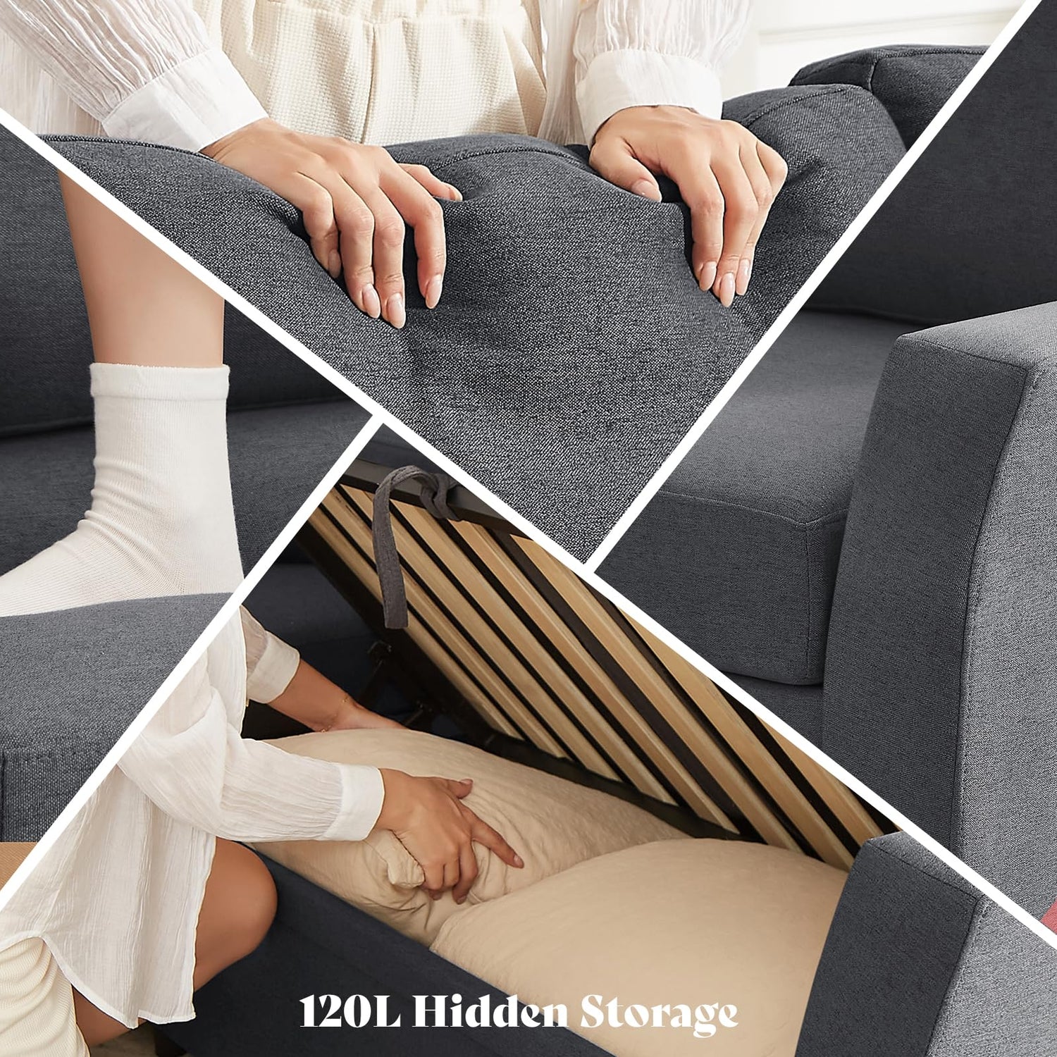 • Generous Storage: Keep your space organized with a hidden 120L storage compartment. Perfect for blankets, books, or seasonal items—your living area stays clutter-free and accessible.