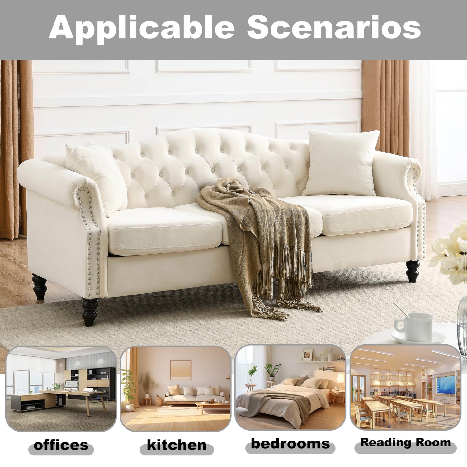 - 【The 2 Piece 79" 3 Seater Classic Chesterfield Sofa Set】2 Piece 3-Seater Velvet Sofa Set is not only comfortable to sit, beautiful appearance, looking simple and generous, and fashionable temperament--Featuring the classic Chesterfield sofa design, it is classic and sophisticated. Perfect with any decorative theme, this sofa is the perfect choice for your living room, bedroom or office.(The cushions are compressed and take 48-72 hours to fill.)