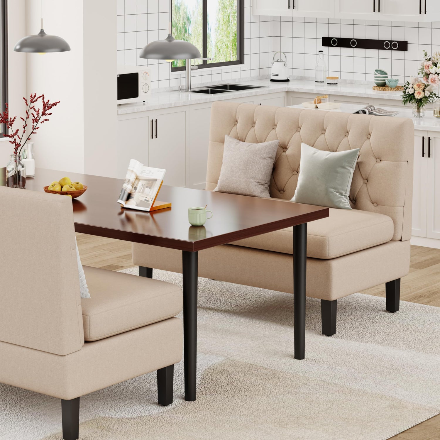 Andeworld Modern Loveseat Settee Button Tufted Sofa Couch Upholstered Banquette Dining Bench High Back Living Room Funiture,Khaki
