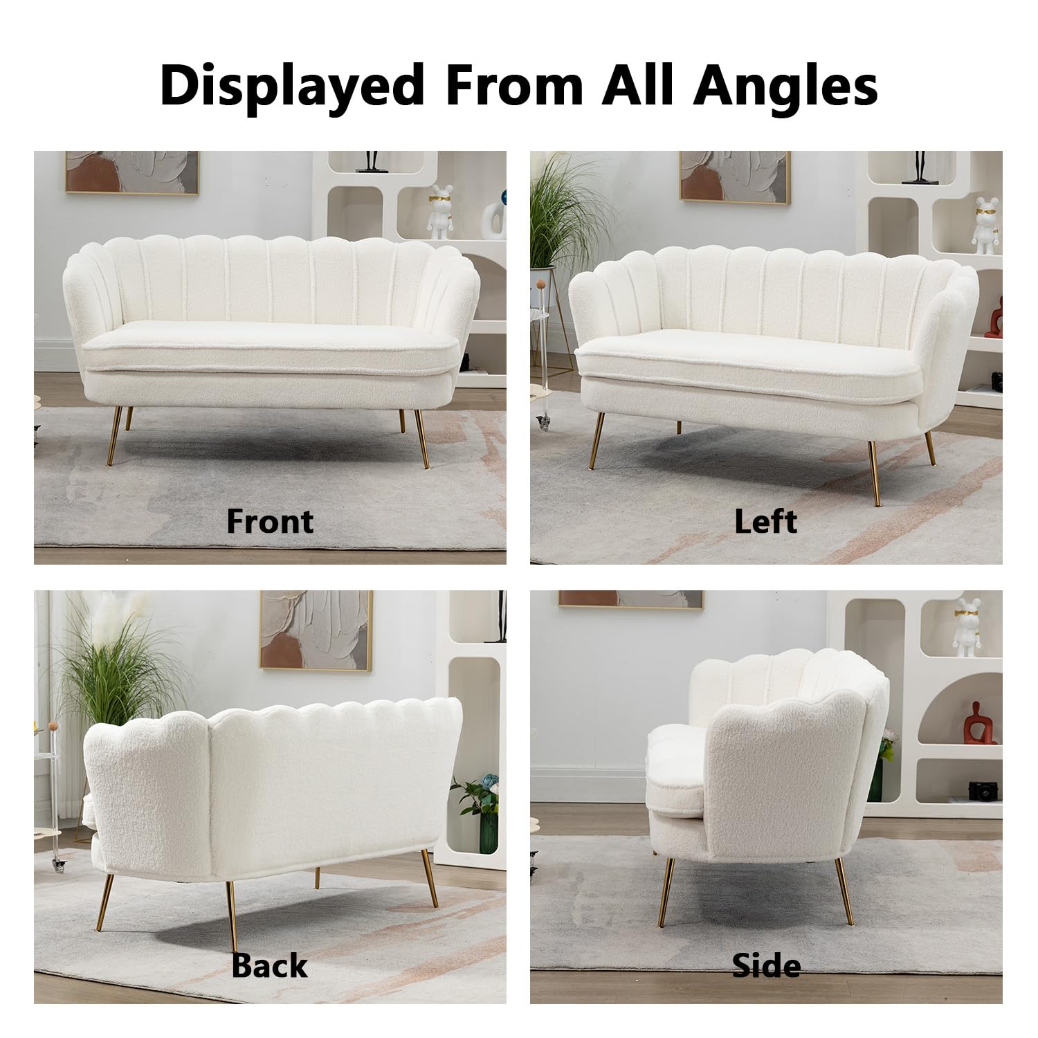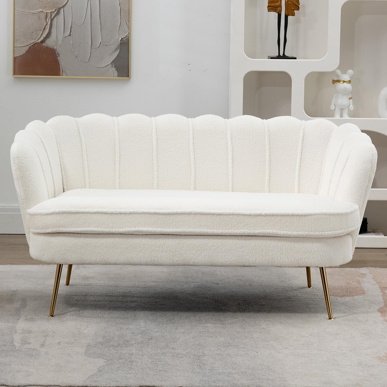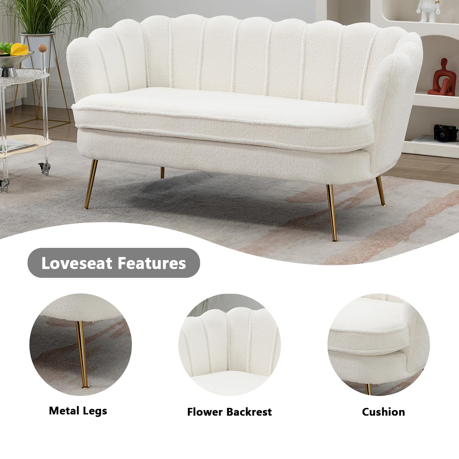 Anwick 59" Small Modern Chenille Loveseat Sofa, 2-Seater Sofa with Gold Metal Legs, Small Couch with Flower Shaped Back for Living Room Bedroom Office (Ivory)