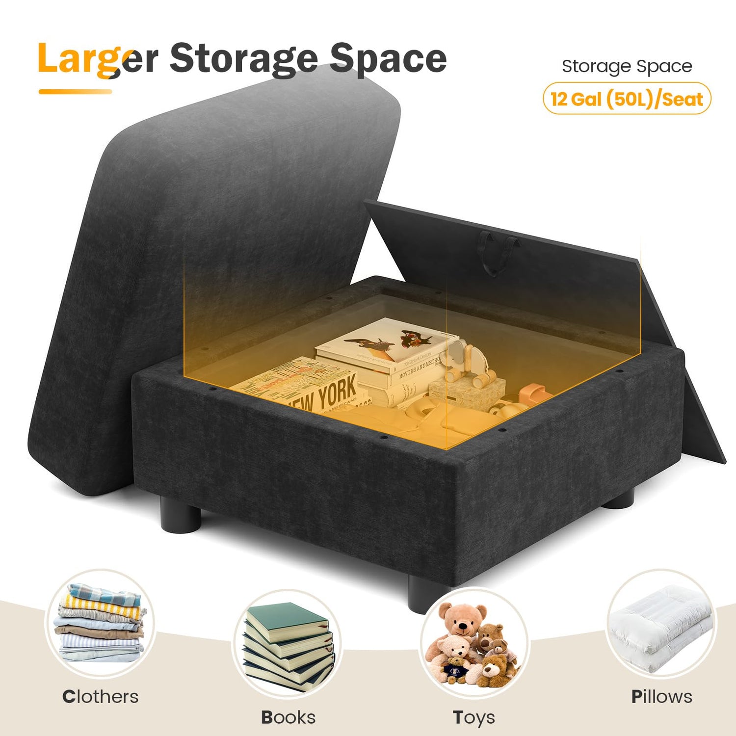 - 【LARGER STORAGE SPACE】Each section of the modular sectional sofa includes comes with 50L storage space. The handy space in the chaise allows you to store multiple blankets, pillows, seasonal items and any other items. Fully open storage space makes it easier to take items.
