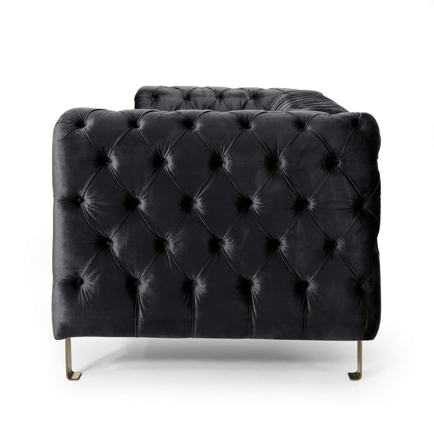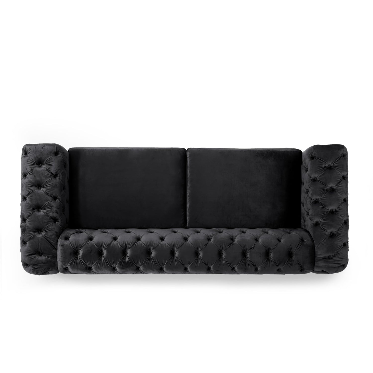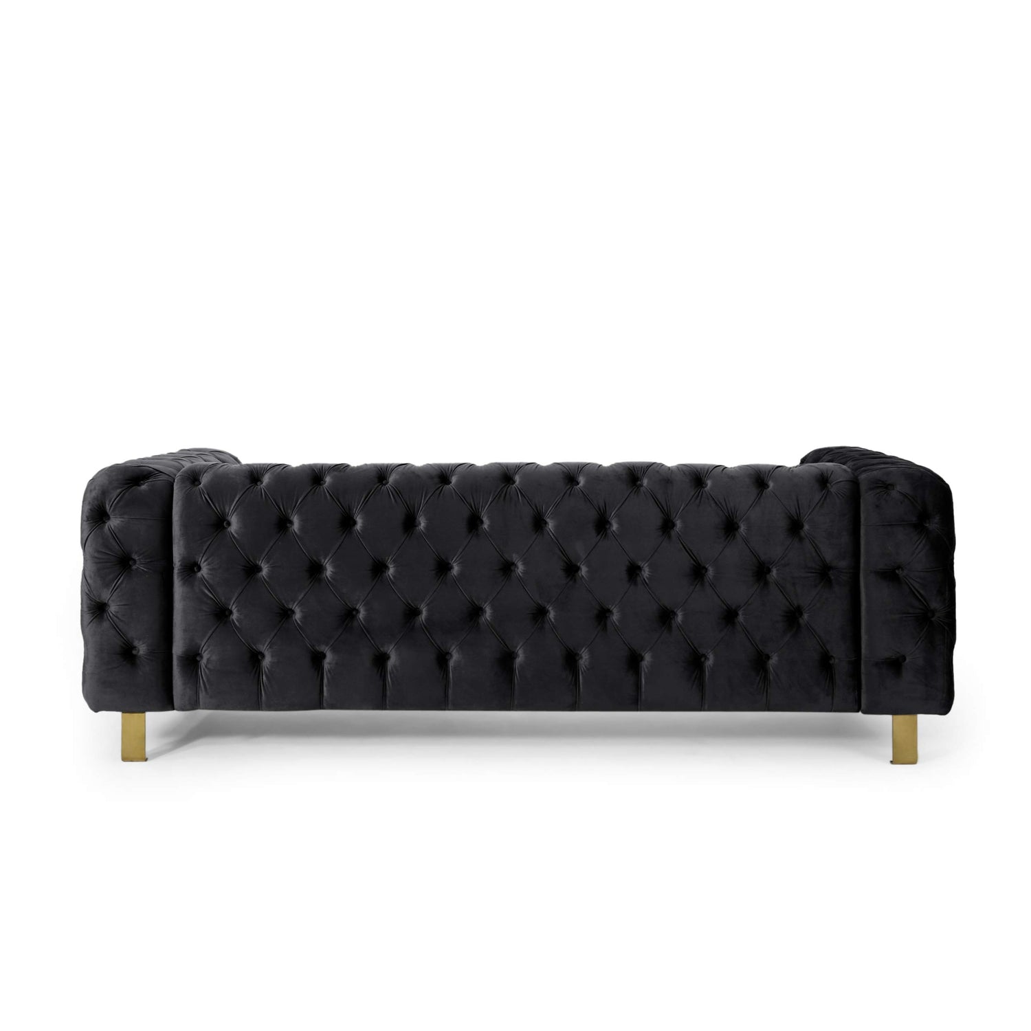 Asucoora Tufted Velvet Sofa Couch for Living Room, Upholstered Tuxedo Arm 3-Seater Sofa Couch with Golden Legs, Chesterfield Sofa Apartment, Office, Studio Black