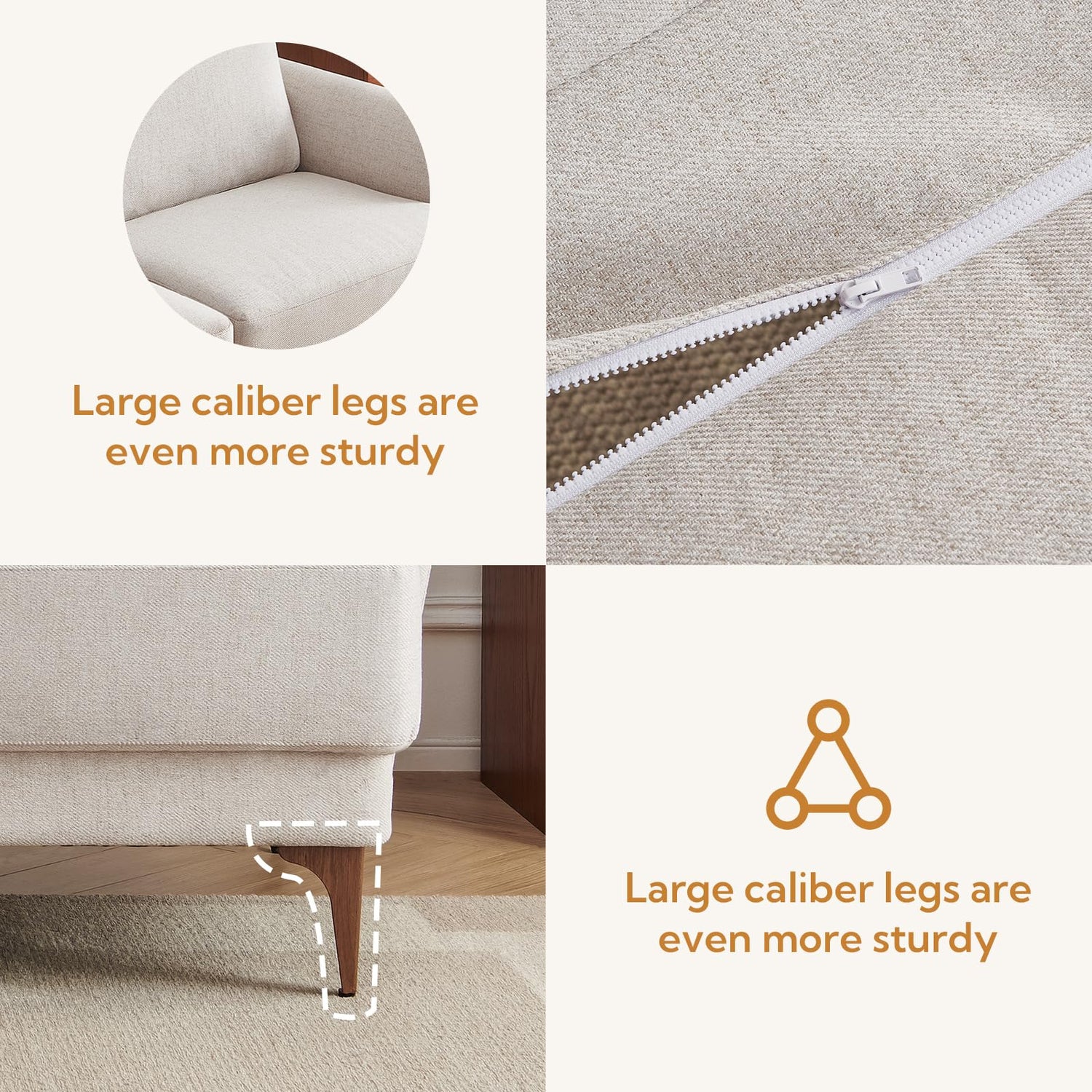 - IN NEUTRAL LINEN: The SYLVIE loveseat sofa combines its clever form of seating with breathable, textural linen upholstery to make this the stunning focal point for your living room. In crisp beige, the comfort couch has space for 2 people. In fresh beige and simple style, easily adds a Mid-century modern vibe to your home. The comfortable sofa has space for 2 people. Sofa Dimension:63.4” W x 29.5” D x 31.5” H.