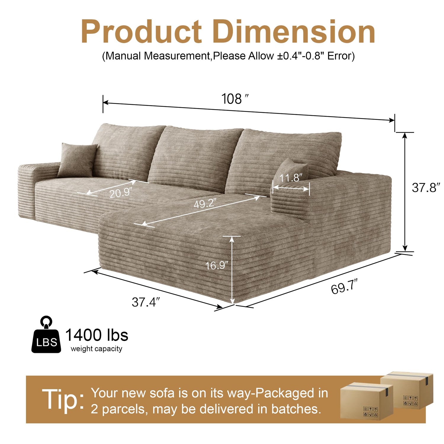 - Modular Sectional Sofa: Experience the ultimate in relaxation with this cloud couch–inspired L-shaped couch, designed for both comfort and style. Featuring clean lines, a sleek modular structure, and ultra-soft corduroy fabric, this sofa maximizes space while creating a cozy, inviting atmosphere. Perfect for living rooms, apartments, or bedrooms, this corner sofa adds a timeless, sophisticated touch — making your space feel warm, inviting, and truly your own. Bring home comfort and style that you’ll be happy with every day.