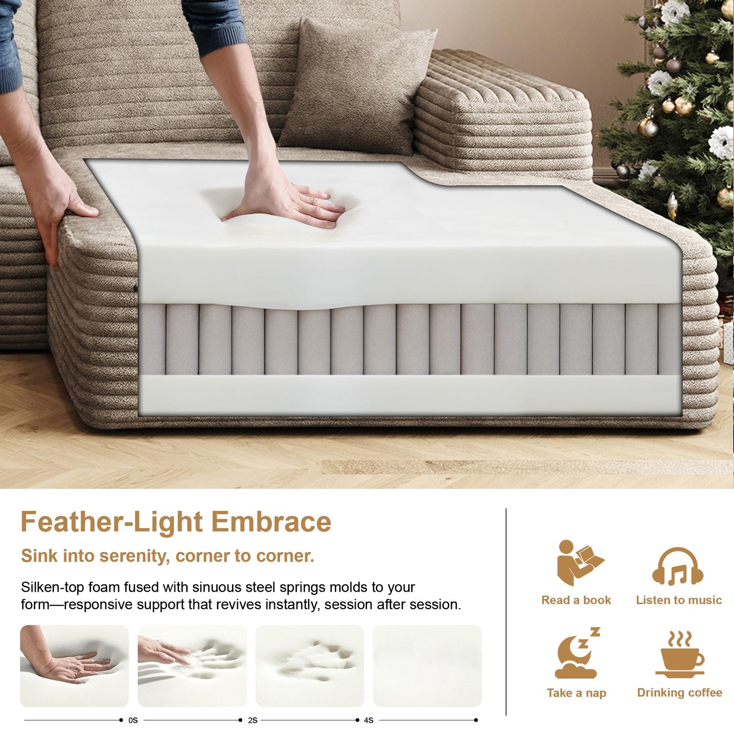 - Plush Corduroy Fabric:Feel the difference with our plush corduroy fabric, as soft as a hug from your favorite blanket. The rich texture and subtle sheen of this cloud couch elevate your living space, offering a tactile experience that pampers you. Cozy up and embrace the warmth and softness all year long with our modular sectional sofa.