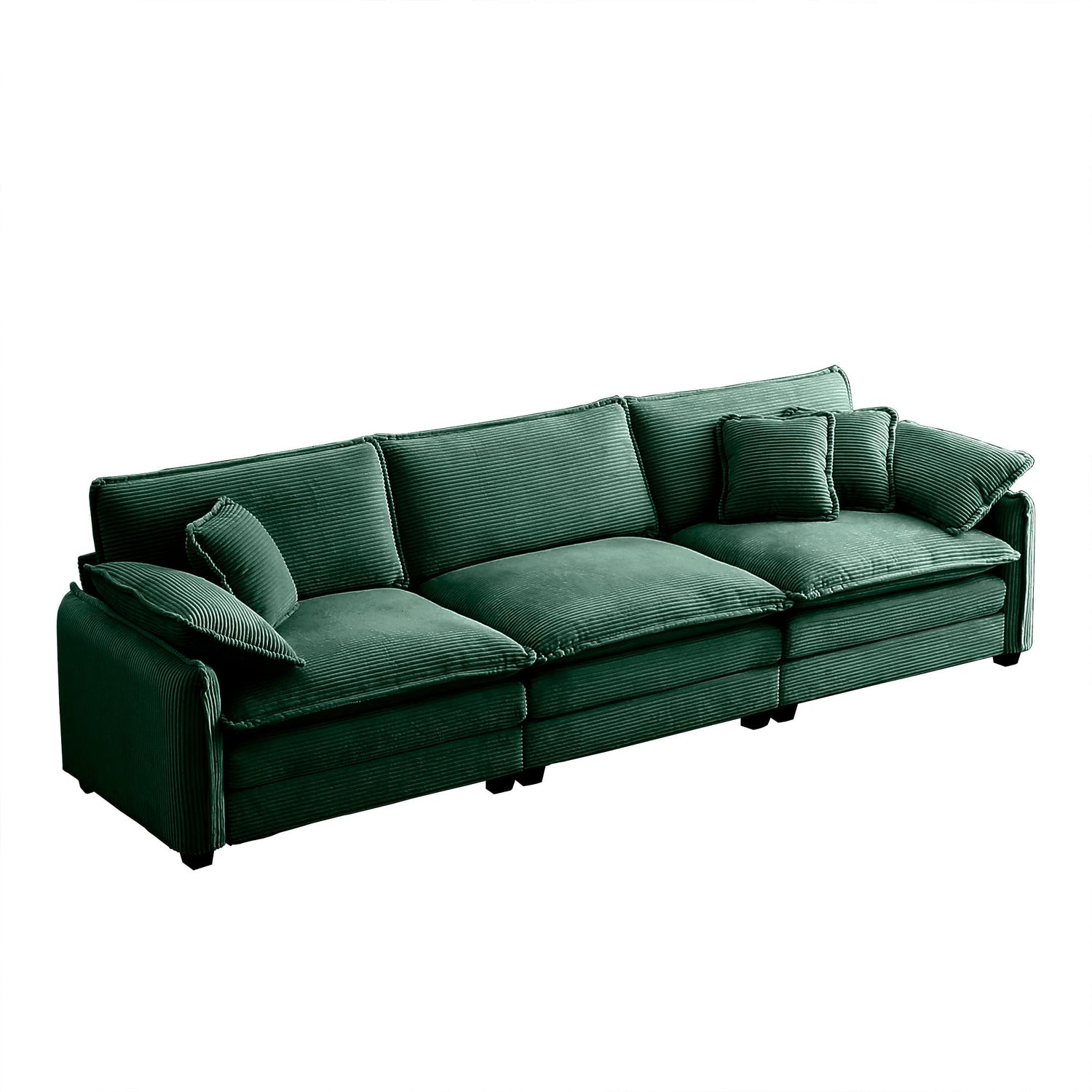 Ball & Cast 115.34" Modular Sectional Sofa Couch, Comfy Corduroy 3 Seat Upholstered Reclining Sofa-Bed w/ 5 Pillows & Removable Back Cushions for Living Room Apartment Office Small Spaces, Green