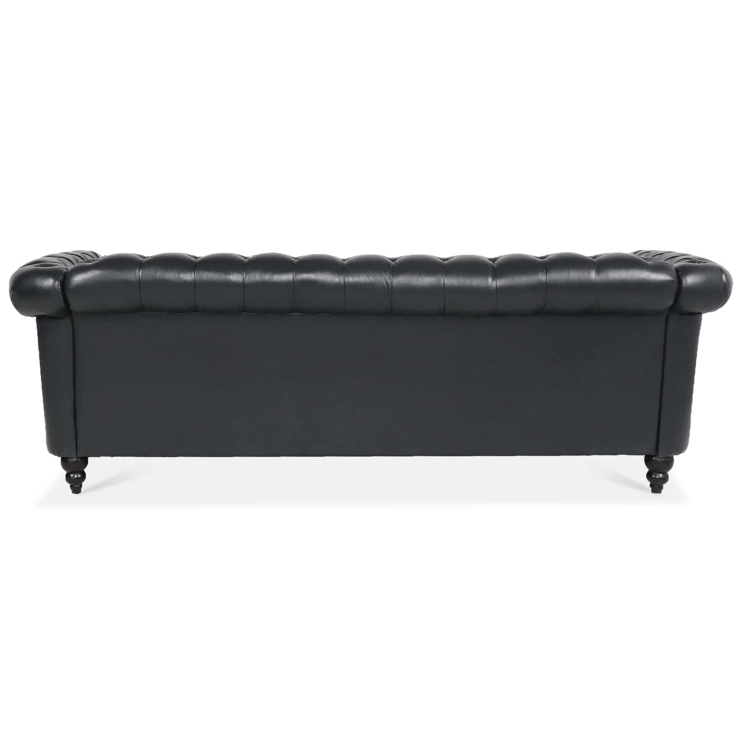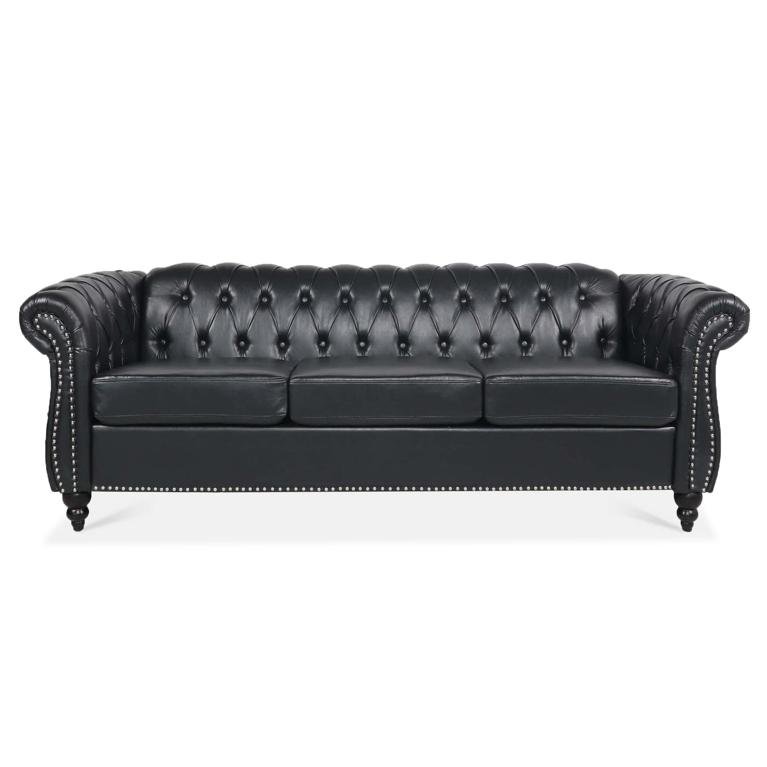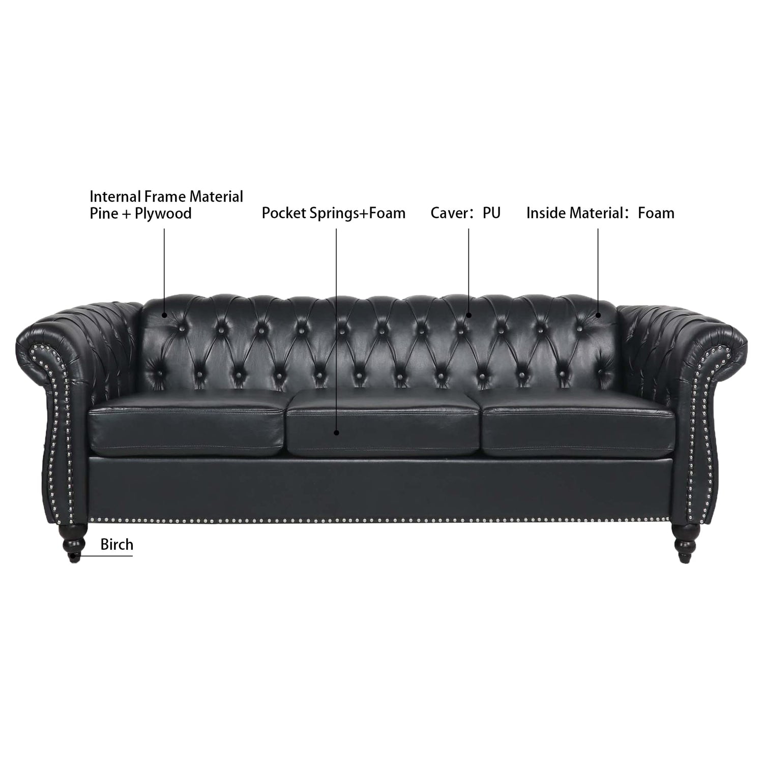 Ball & Cast 84" Chesterfield Leather Sofa with Channel Tufted Seat Back,Classic 3 Seater Couch w/Roll Arm Nailhead Trim and Upholstered,Mid Century Furniture for Living Room,Bedroom,Office,Black PU