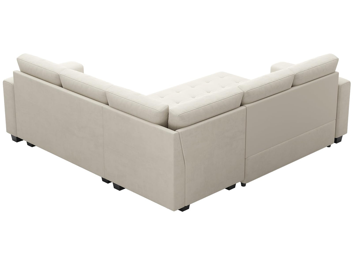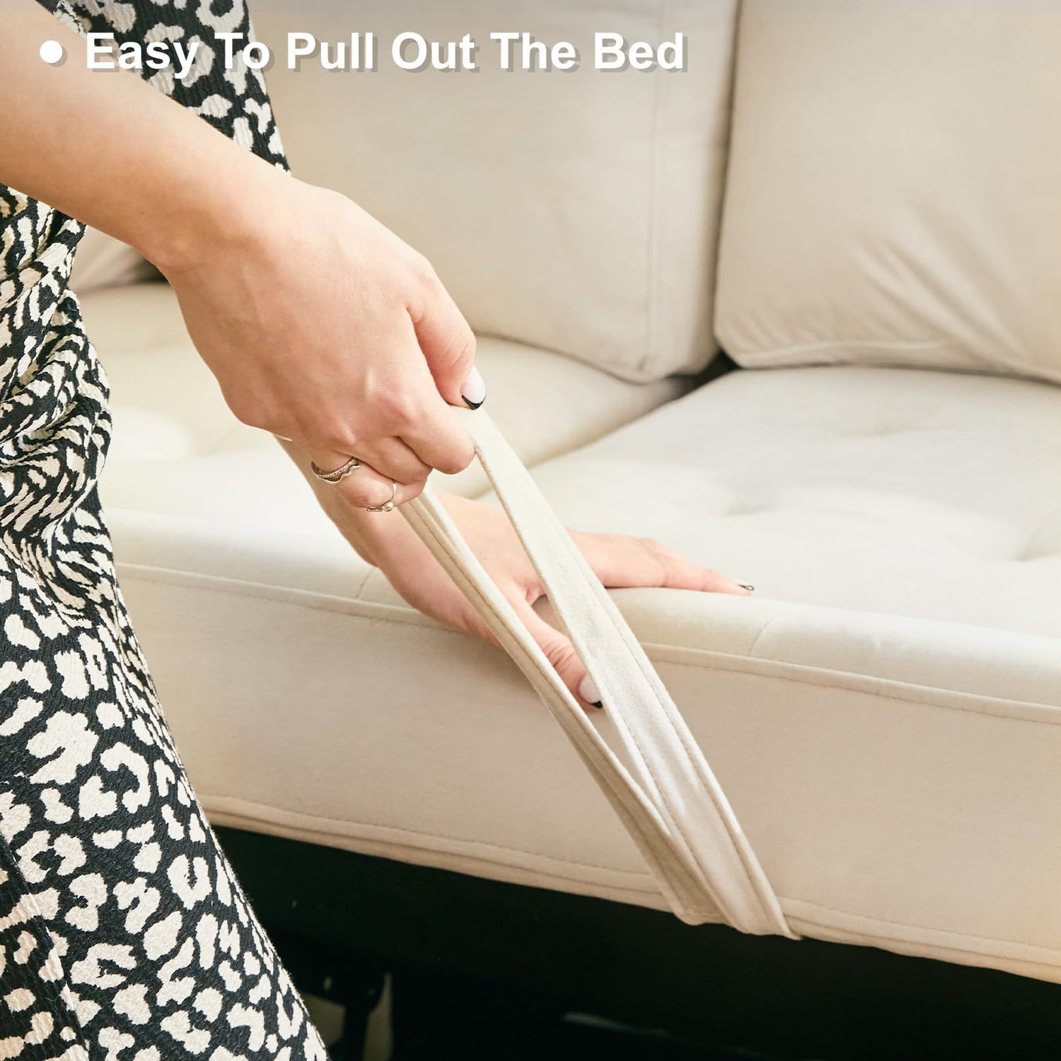 Belffin Modular Sectional Sleeper Sofa with Pull Out Couch Bed Velvet Convertible L Shaped Sectional Couch for Living Room Apartment Beige