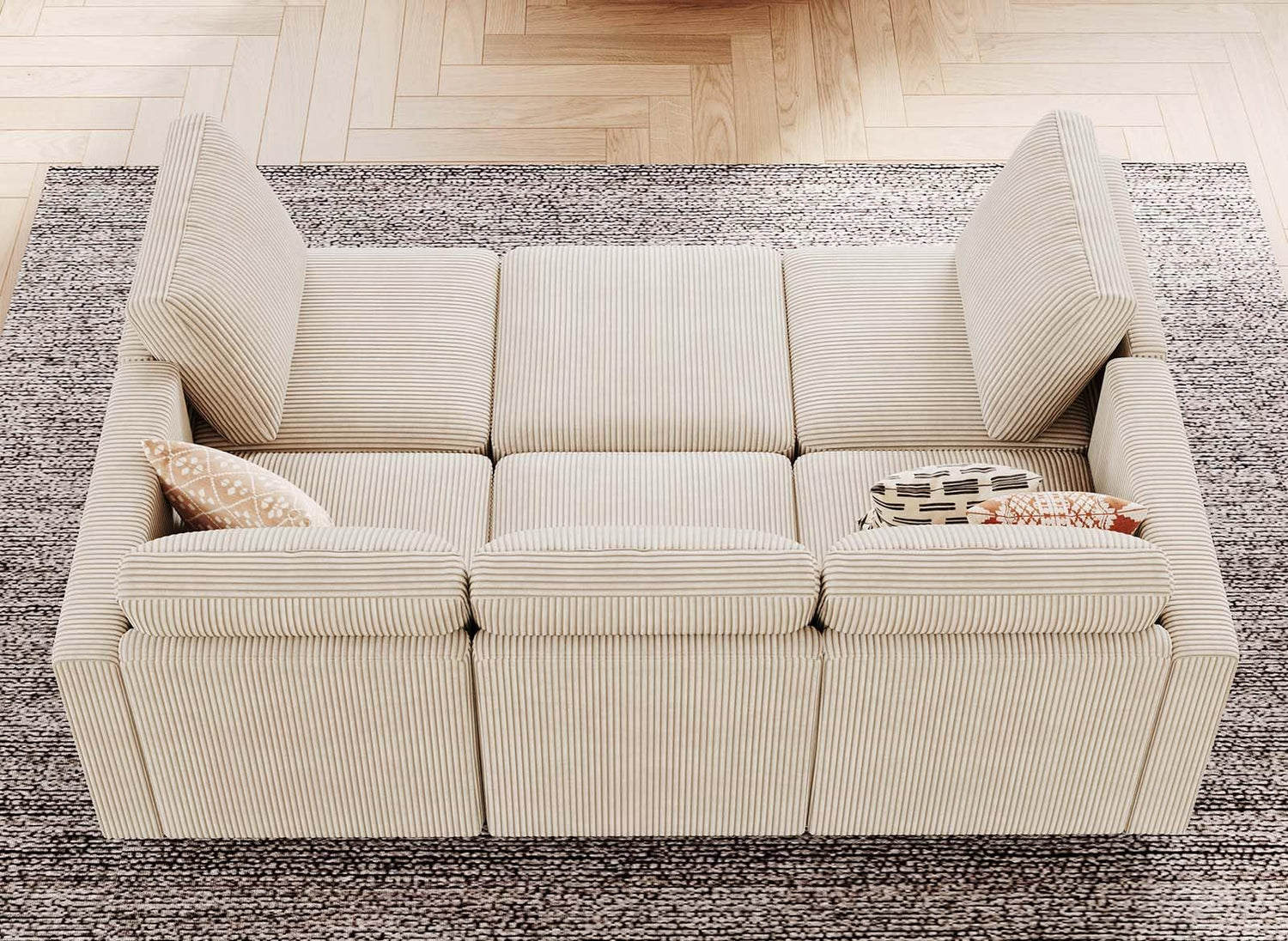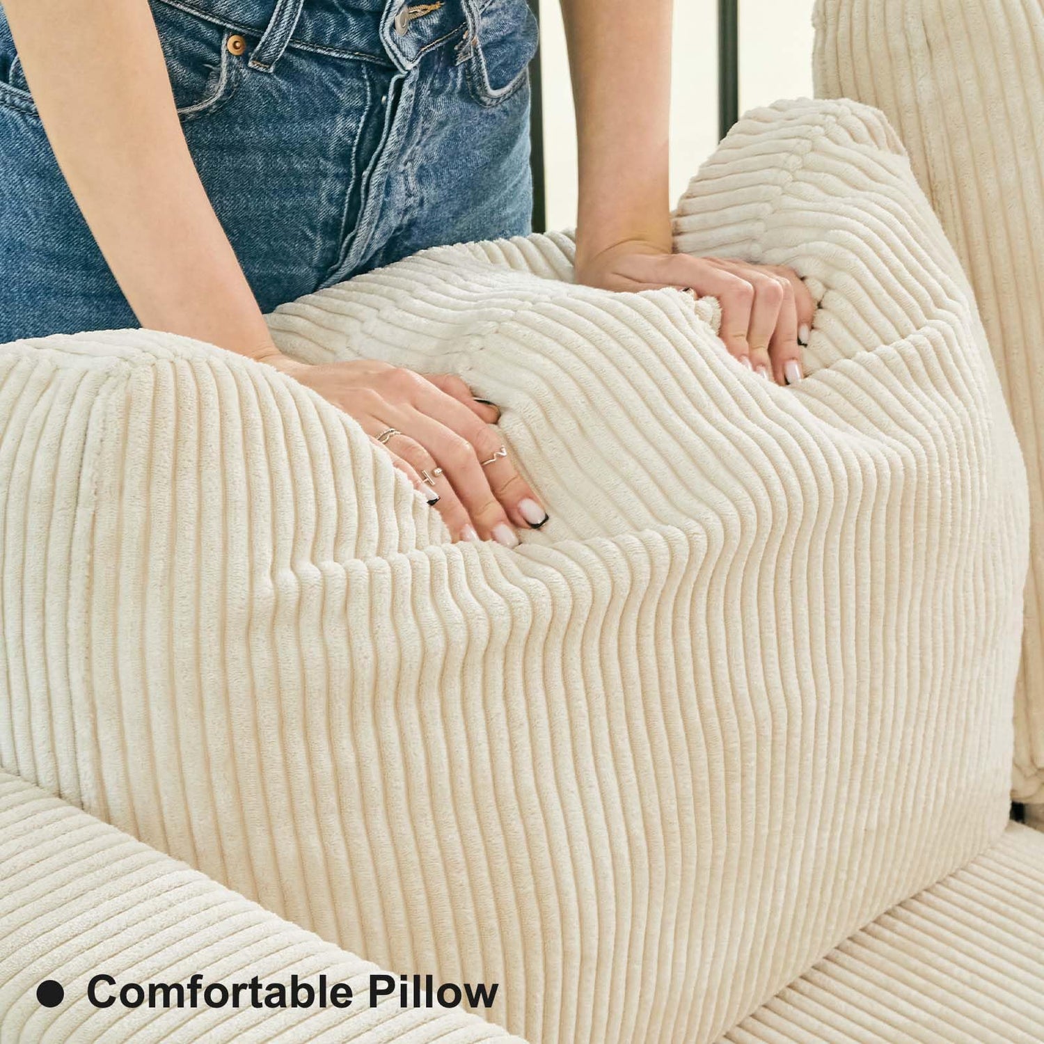 - NEUTRAL VIBES - Our corduroy sectional sofa features clean and classic design with comfortable seats to offer you a spacious relaxing. The simple colors beige grey green definitaly give your living room a neutral vibes. Imagine after a long day you come back home and lounging in this elegant and comfortable couch, this is all you need, right