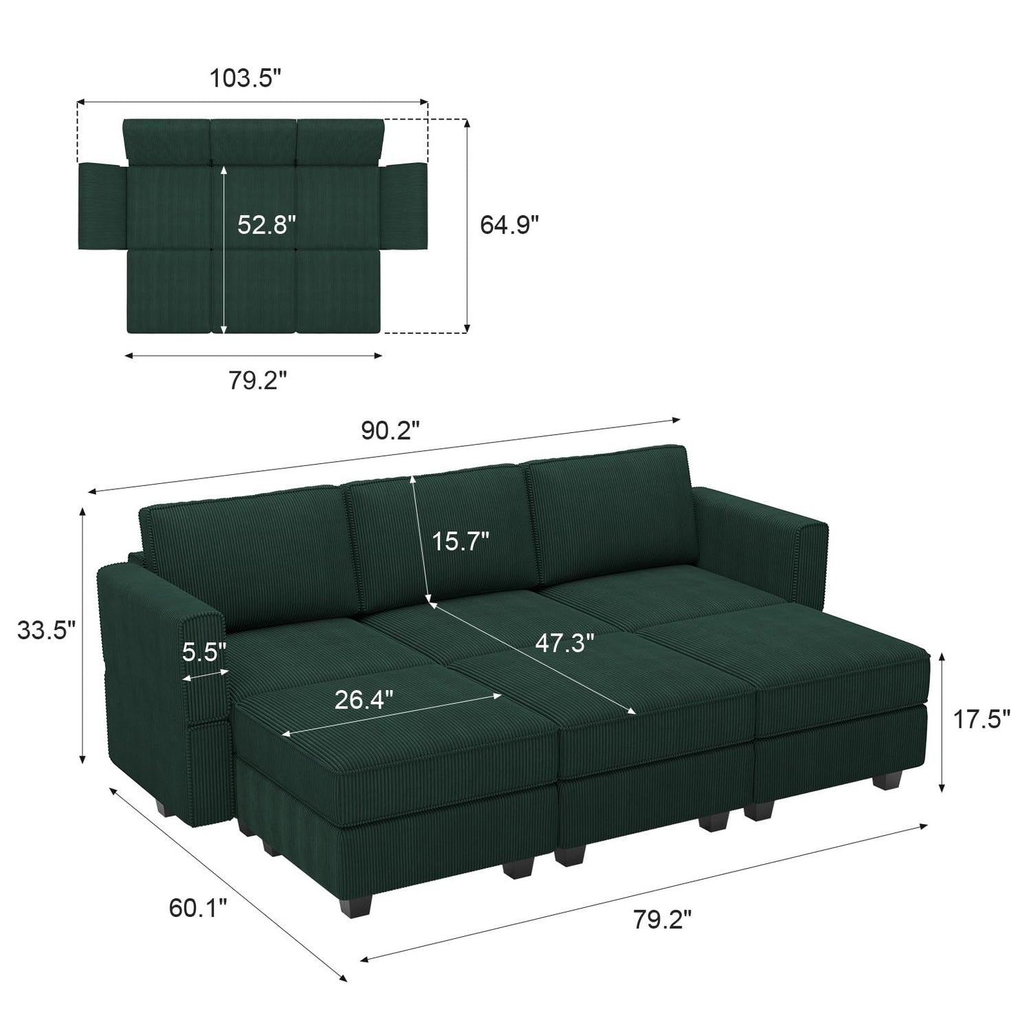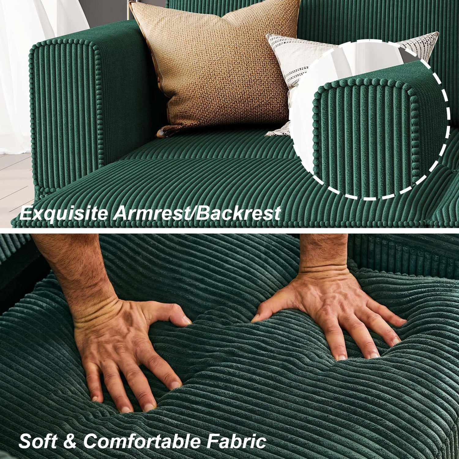 Belffin Modular Sectional Sofa with Storage Ottoman Seats, Corduroy Convertible Modular Sofa Bed Sectional Couch for Living Room, Green