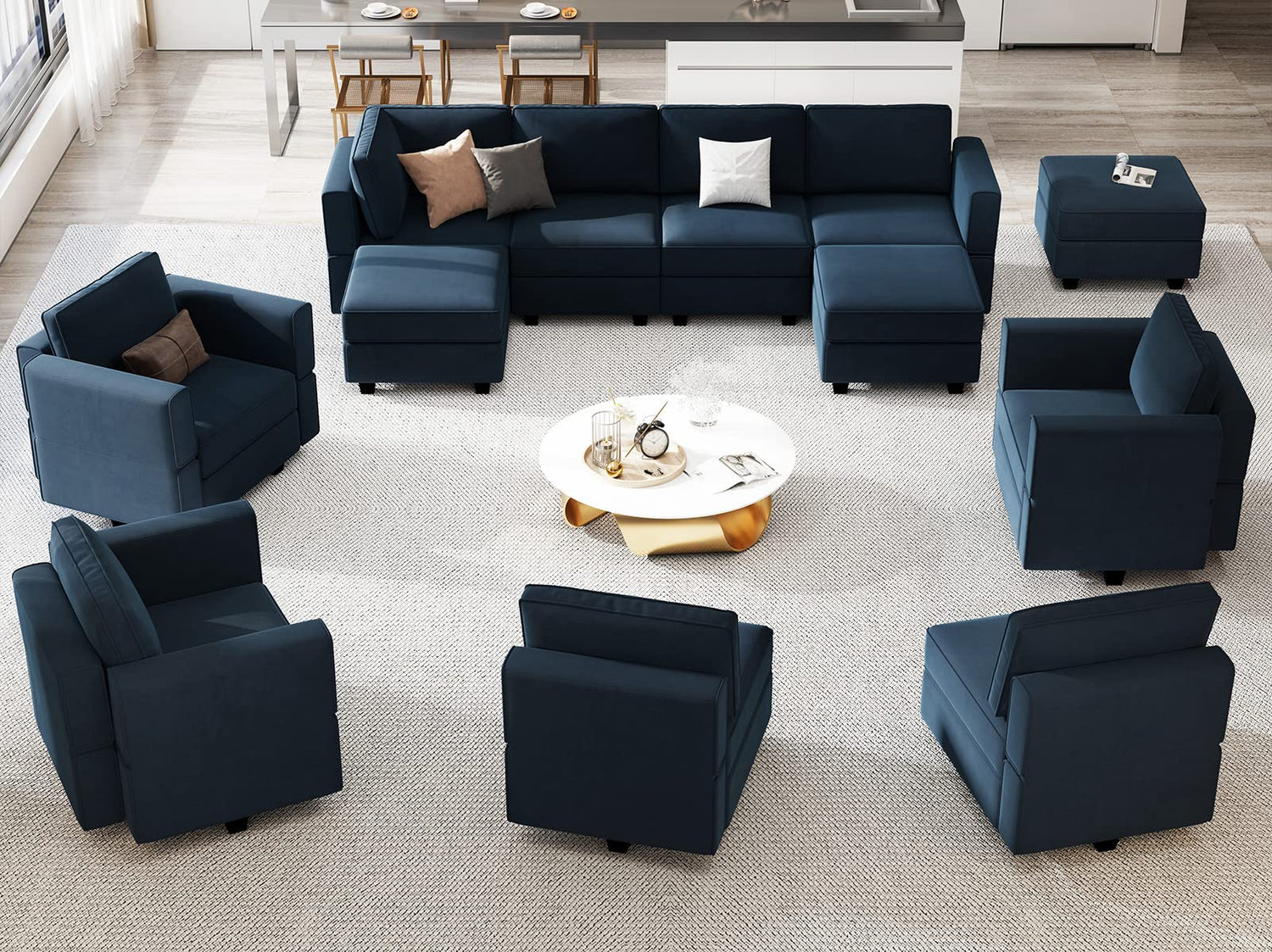 - Easy assembly: The modular sectional sofa needs to be assembled. No tools needed and easy to follow instructions to assemble. Overall corner sofa size: 90.20''(L)*90.20''(W)"*33.50"(H).The modular sofa comes in 7 packages that may arrive separately within different days.