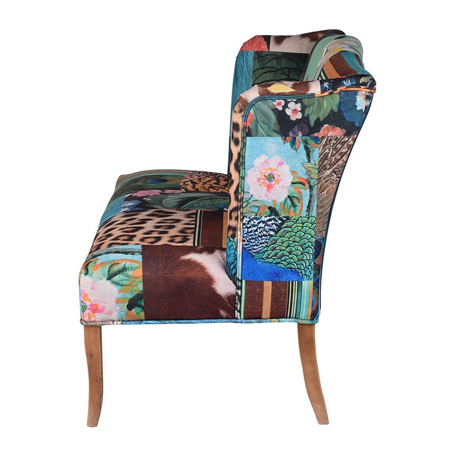 Details: Take some time out for yourself upon this compact yet spacious accent settee bench. Made with high density, high elasticity sponge cushioning, the breathable velvet bird collage multicolor upholstery makes it a stylish accessory amid any interior decor. It has a wingback design and solid wooden legs that add to its sleek profile, providing just the right mix of comfort and contemporary edge. It will be a lovely addition to any living room, entryway, lounge or a compact social space. The attached adjustable foot pads help keep it standing upright without wobbling, all while protecting the floor from unwanted scratches.