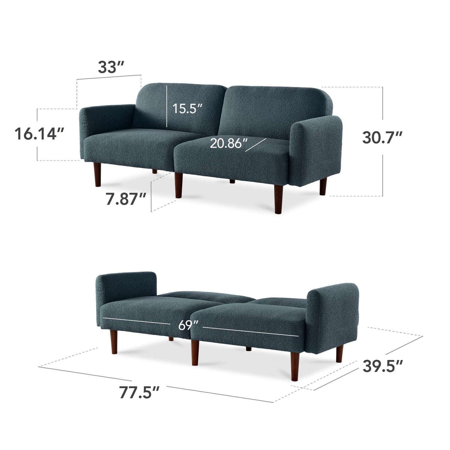 Best Choice Products 77" Mid Century Modern Boucle Loveseat Sofa, Couch, Convertible Sofa Sleeper Bed w/Real Wood, Removable Armrest - Slate Blue