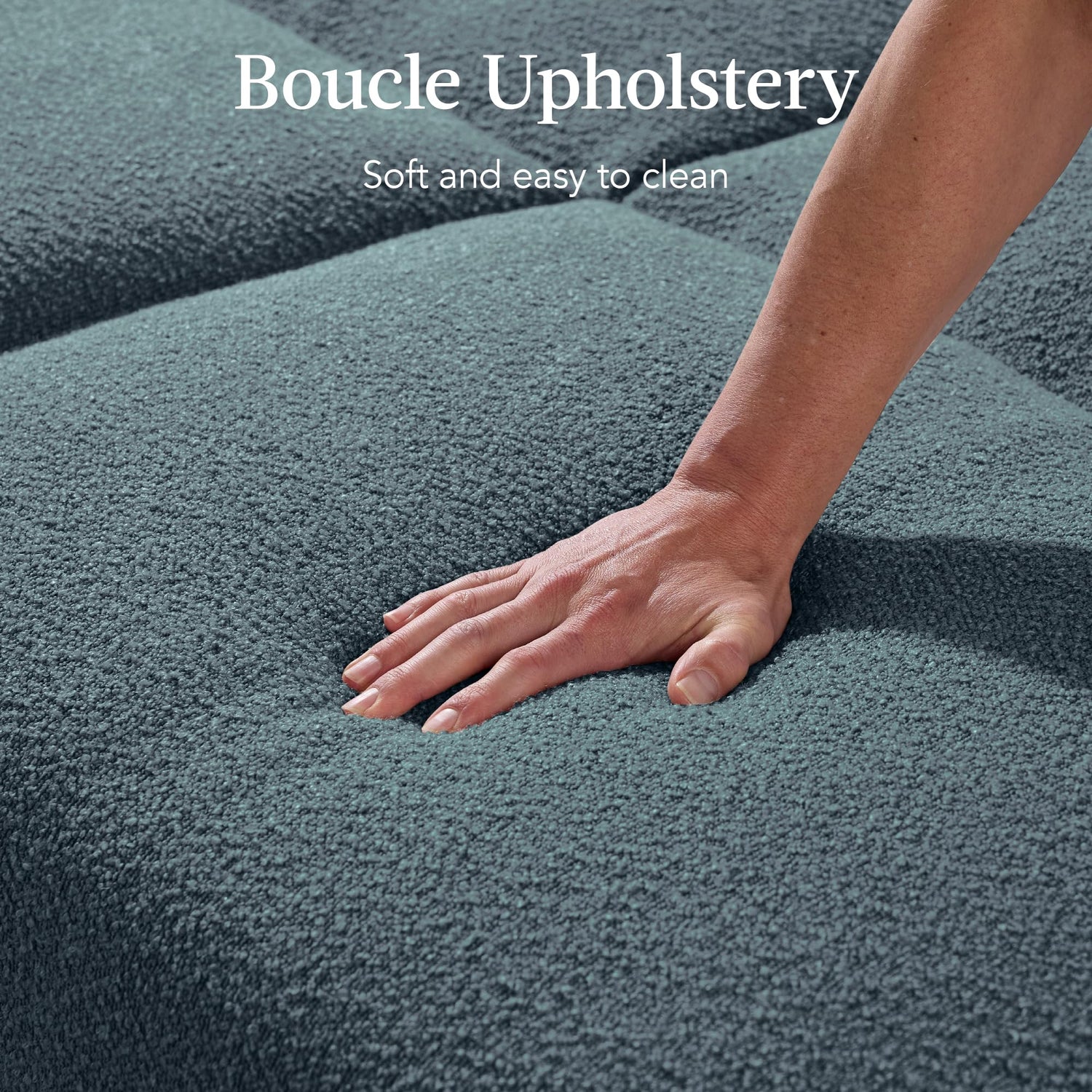 - UPHOLSTERY & FOAM MATERIALS: Made with soft, breathable boucle material and plush foam cushioned padding for comfort and longevity; OVERALL DIMENSIONS: 77.5"(L) x 33"(W) x 30.7"(H); WEIGHT CAPACITY: 500 lbs.; Items contained in 2 separate boxes. Transportation times may vary per box.