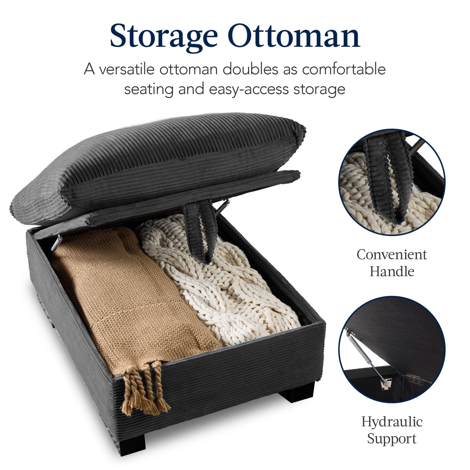 - OTTOMAN WITH STORAGE: The matching comfy pillowtop large ottoman has a 300-pound weight capacity, perfect for lounging and relaxation, and provides convenient storage for blankets, magazines, and other essentials to keep your living room tidy