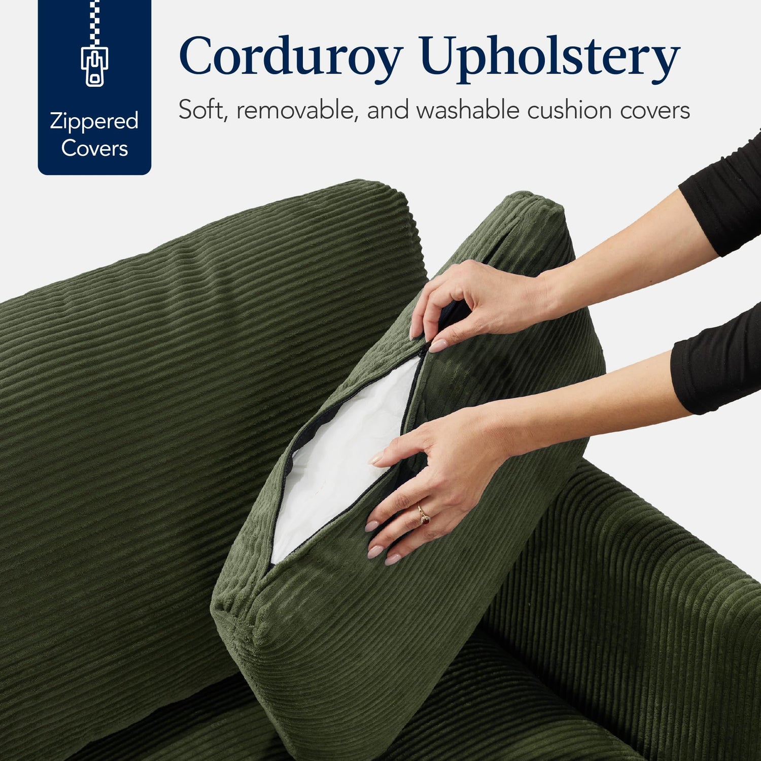 Best Choice Products Modern Loveseat Sofa for Living Room, Corduroy Recliner, Removable Cover, Spring Cushions, Solid Wood Frame, Easy Assembly for Small Spaces, 82in – Moss Green