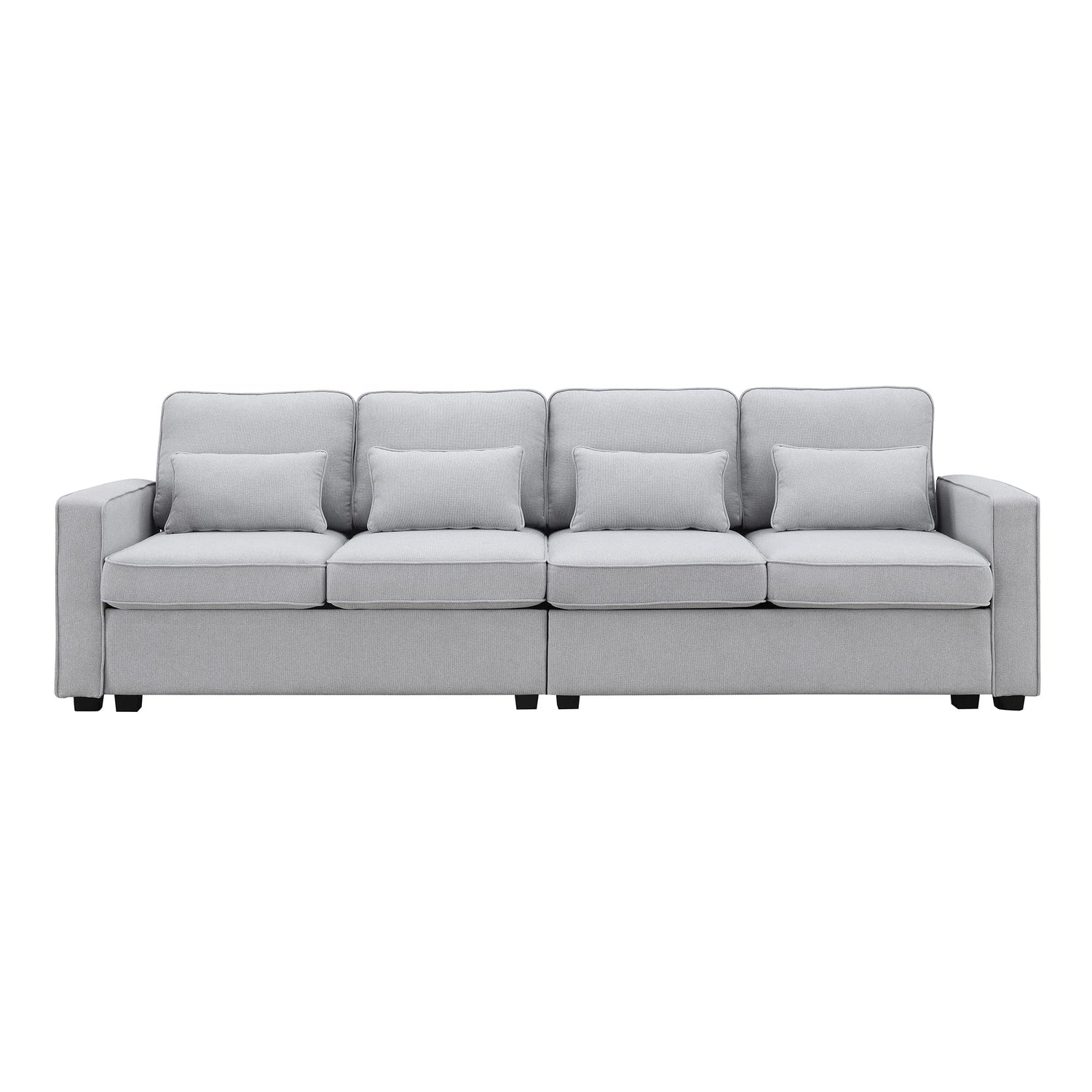 Brisca 104" 4-Seater Modern Linen Fabric Sofa with Armrest Pockets,Minimalist Style Wood Frame Couch W/4 Pillows,for Living Rooms,Apartments,Offices,Light Grey
