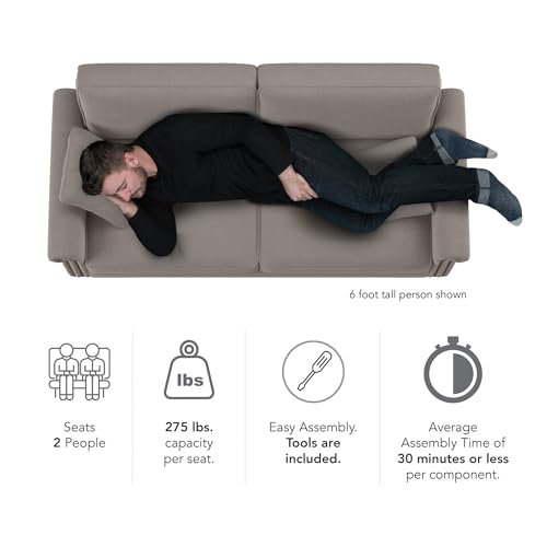 • IMPRESSIVE DURABILITY: The durable metal and wood framework includes a quiet sinuous spring design with cross supports that won't sag or shift over time. Each of the small couch's seats supports up to 275 pounds for a total weight capacity of 550 pounds.
