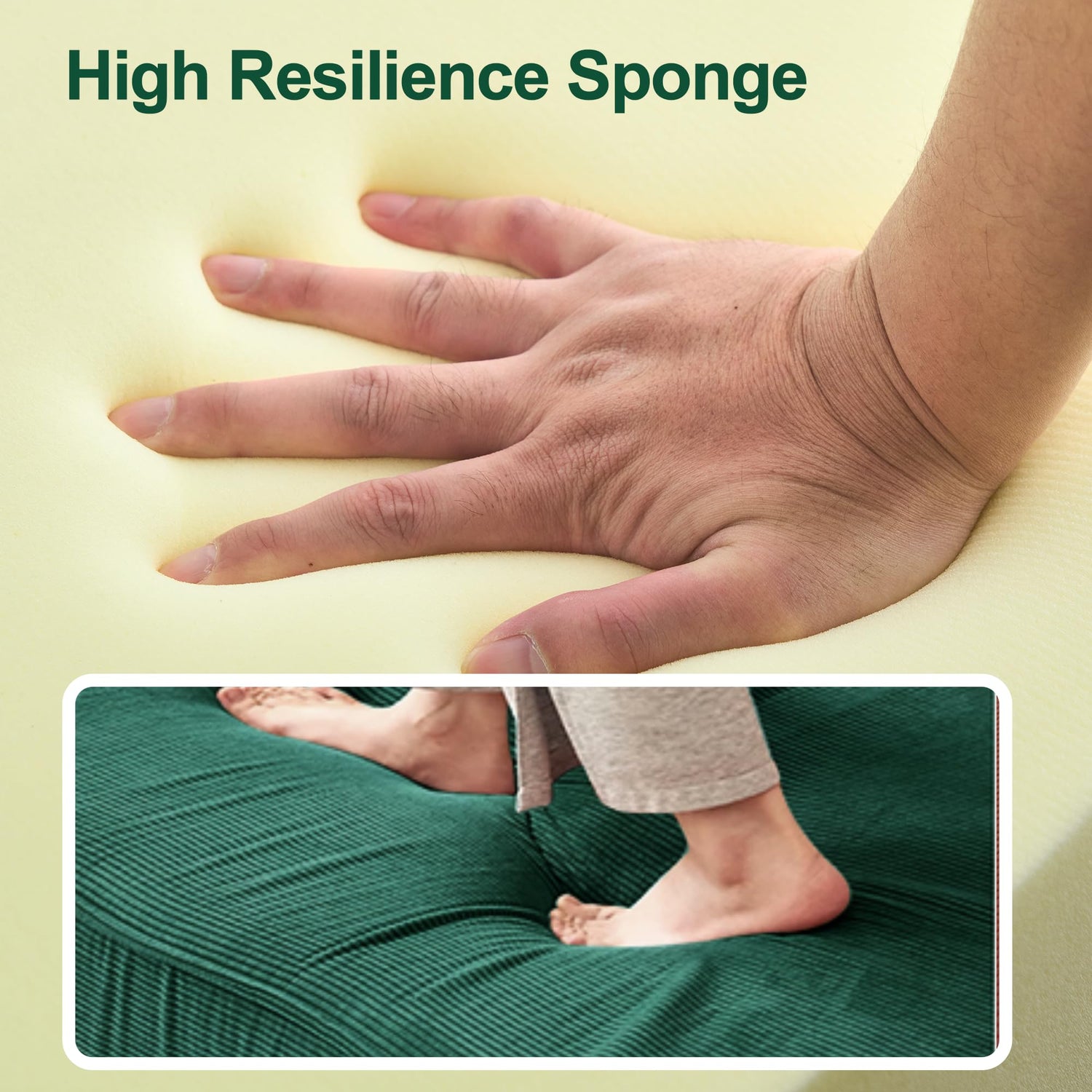 - 【High-Density Sponge】Upholstered in soft, breathable Small Streak Corduroy fabric, this convertible sofa bed features high-density foam that effectively alleviates pressure while providing robust support. The accompanying plush pillows enhance your lounging experience, ensuring relaxation like never before.