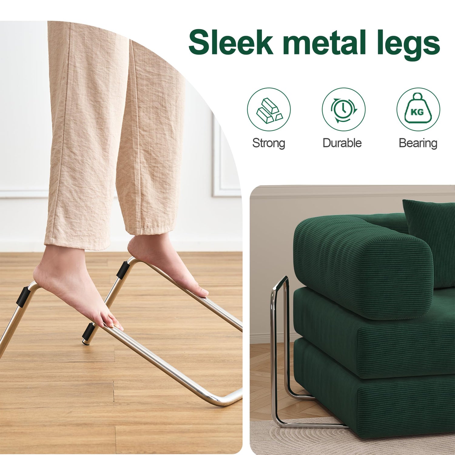 Carzzi-Life 79" Convertible Sofa Bed with Pillows, Corduroy Folding Sleeper Sofa with Fixed-Shape Frame, Boneless Couch for Living Room Bedroom, Floor Sofa Lounge No Assembly Required (Green)